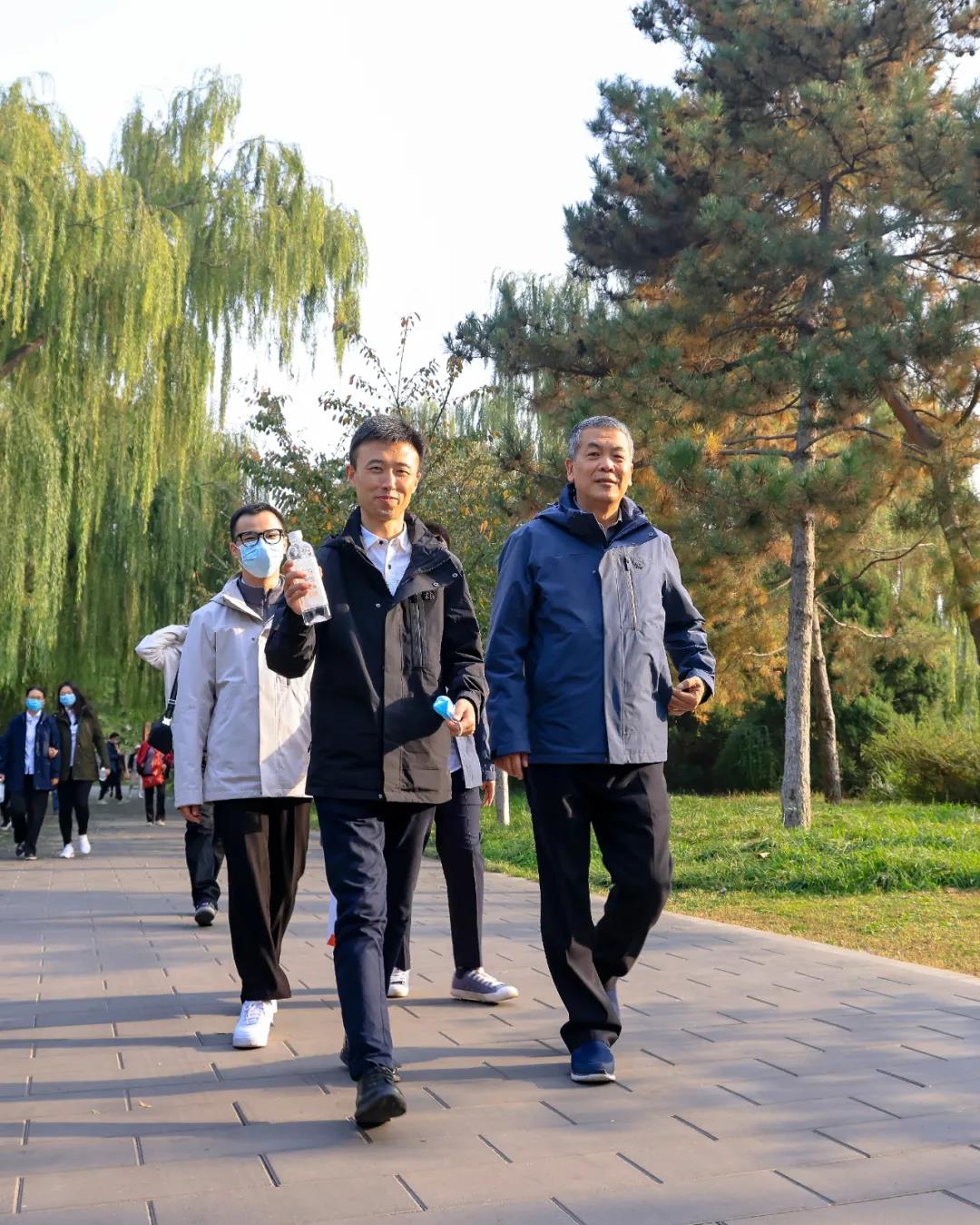 秋日的玉淵潭公園靜謐宜人、色彩斑斕。大家三五成群,邊交流工作生活心得,邊盡情感受“湖光秋色兩相和”的美景,在蜿蜒小路、林間棧道間彩葉花卉的別樣景致中走完了5公里。