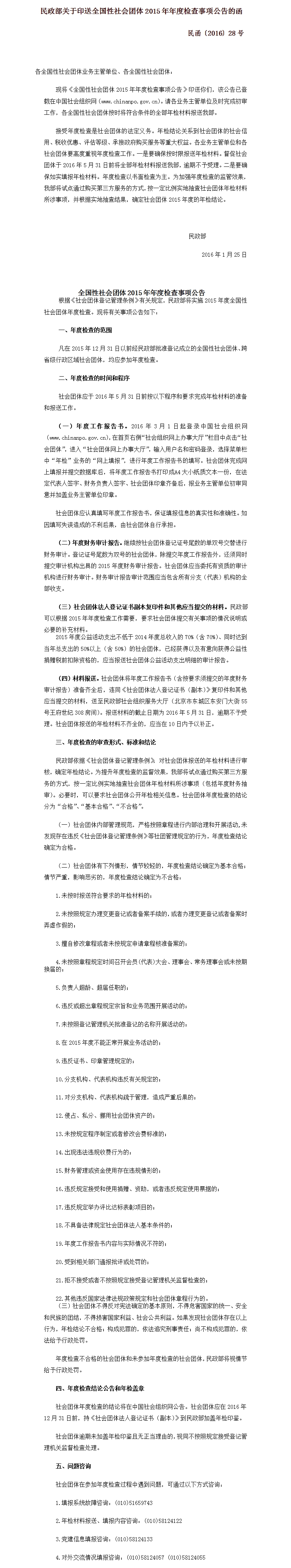 民政部關(guān)于印送全國(guó)性社會(huì)團(tuán)體2015年年度檢查事項(xiàng)公告的函