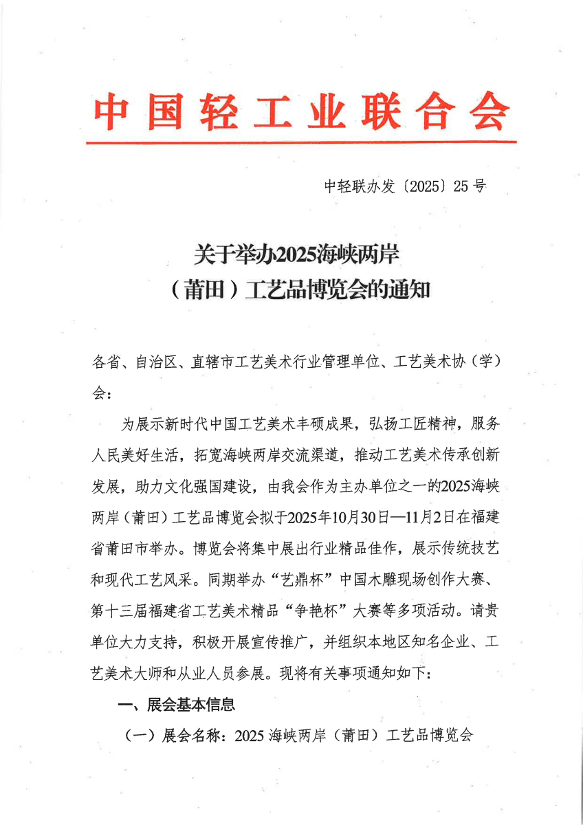 關(guān)于舉辦2025海峽兩岸(莆田)工藝品博覽會的通知