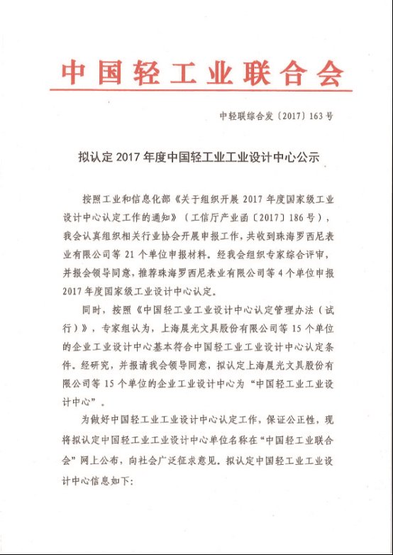 擬認(rèn)定2017年度中國輕工業(yè)工業(yè)設(shè)計(jì)中心公示