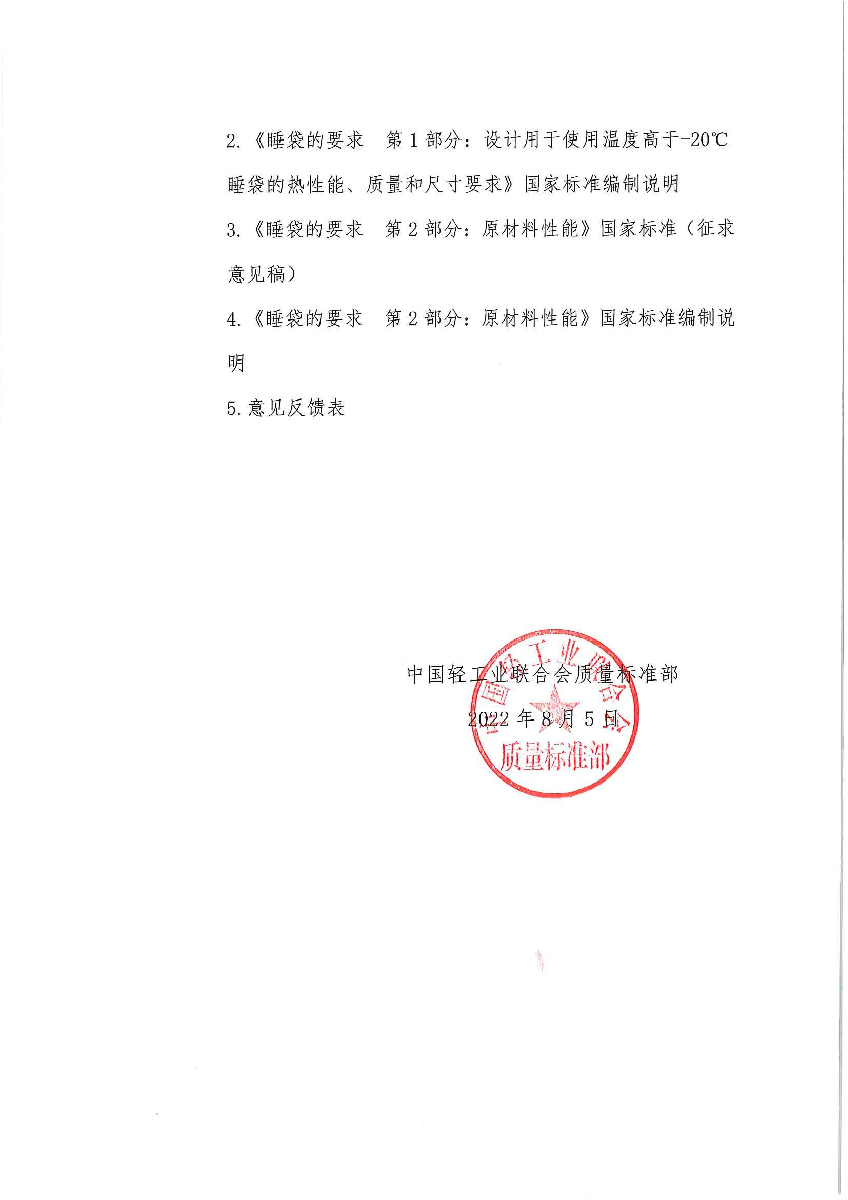 | 3、 | 《睡袋的要求 第2部分:原材料性能》國家標(biāo)準(zhǔn)(征求意見稿) |