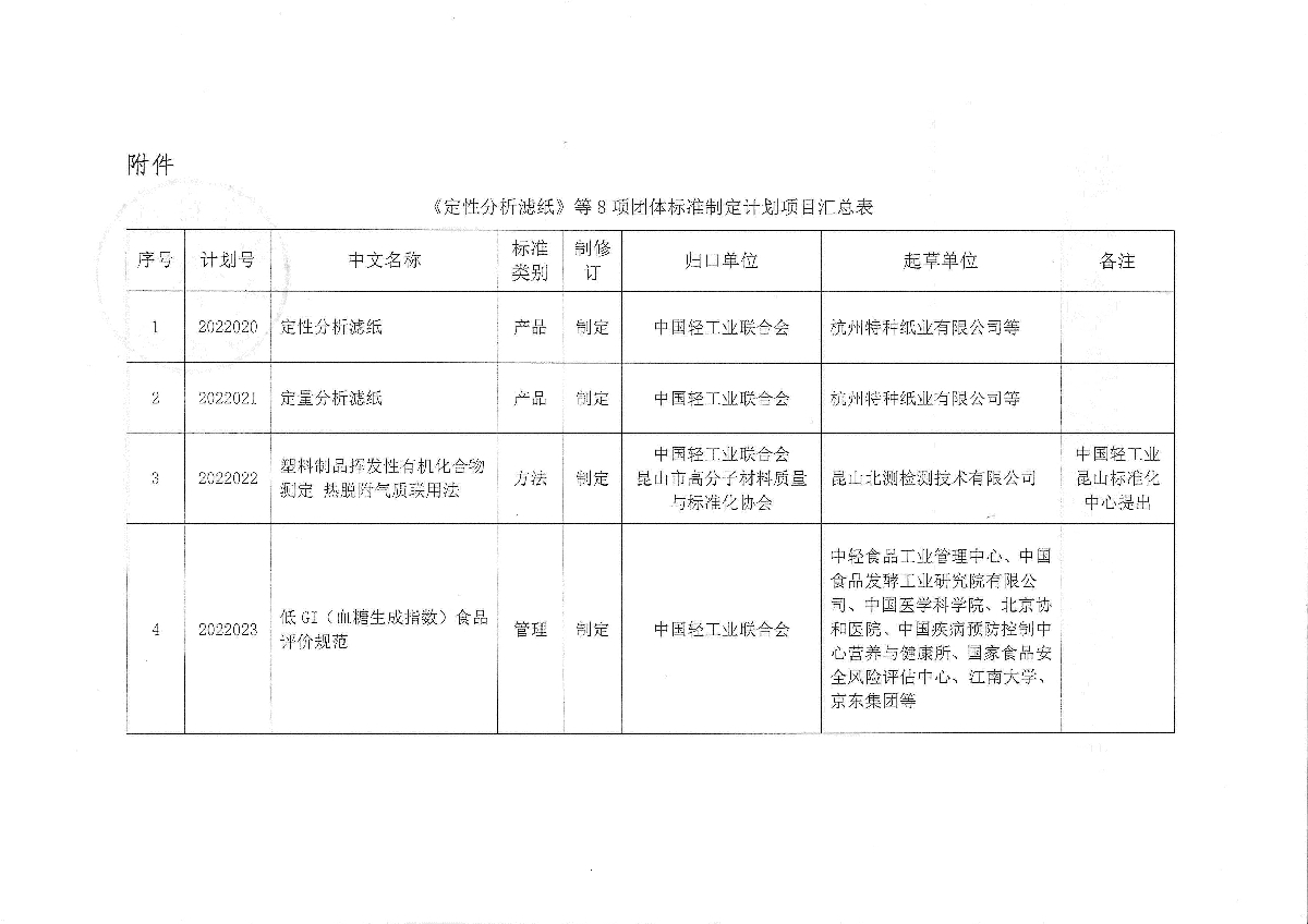關于下達《定性分析濾紙》等8項中國輕工業(yè)聯(lián)合會團體標準計劃的通知
