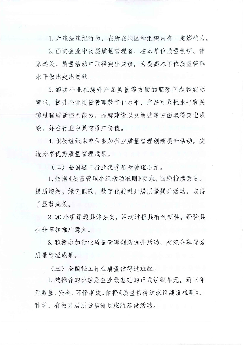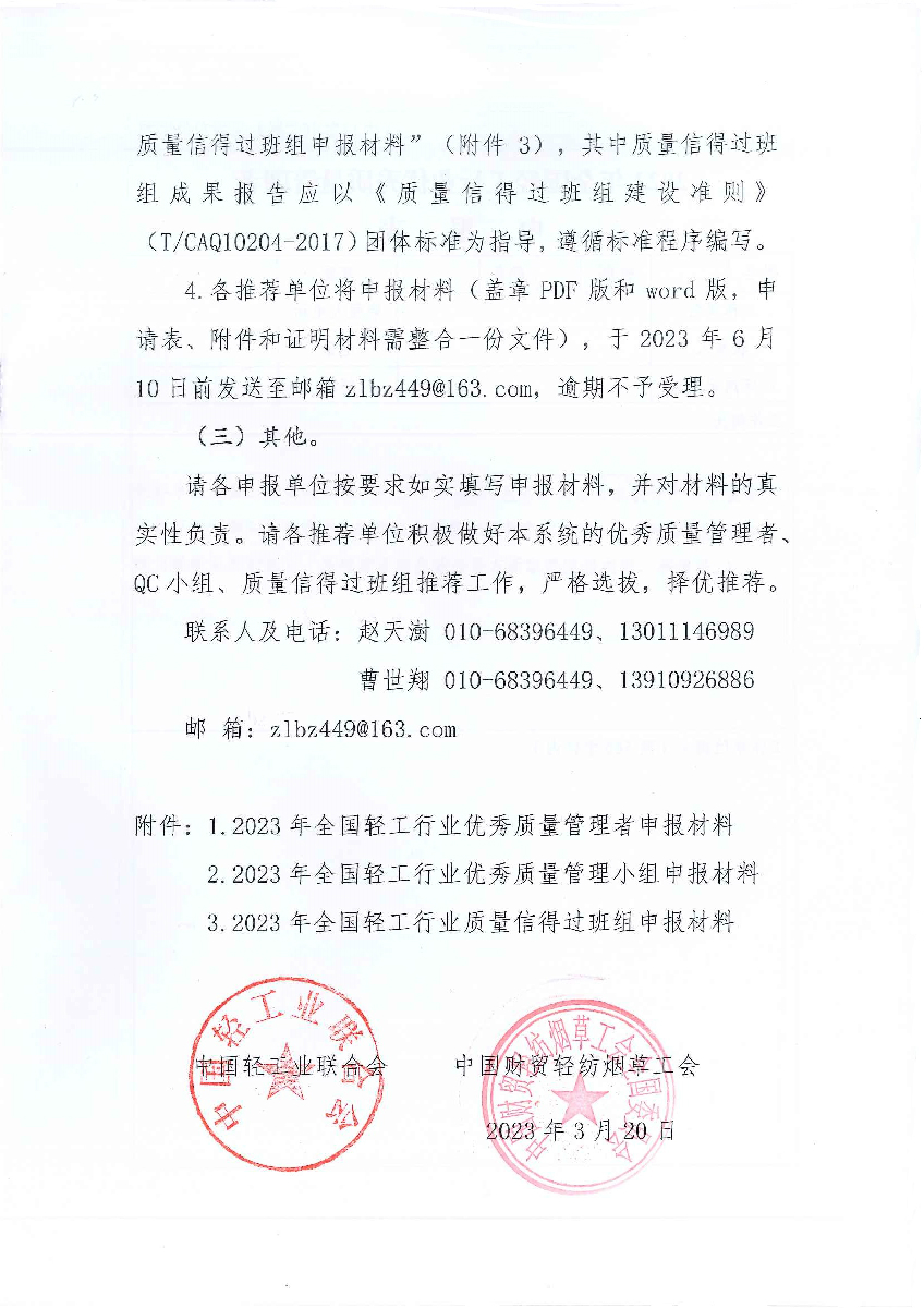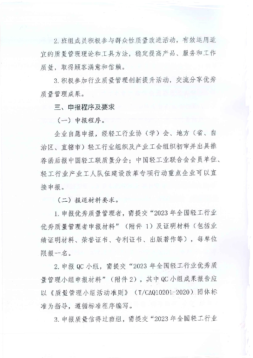 | 3、 | 2023年全國輕工行業(yè)質(zhì)量信得過班組申報材料 |