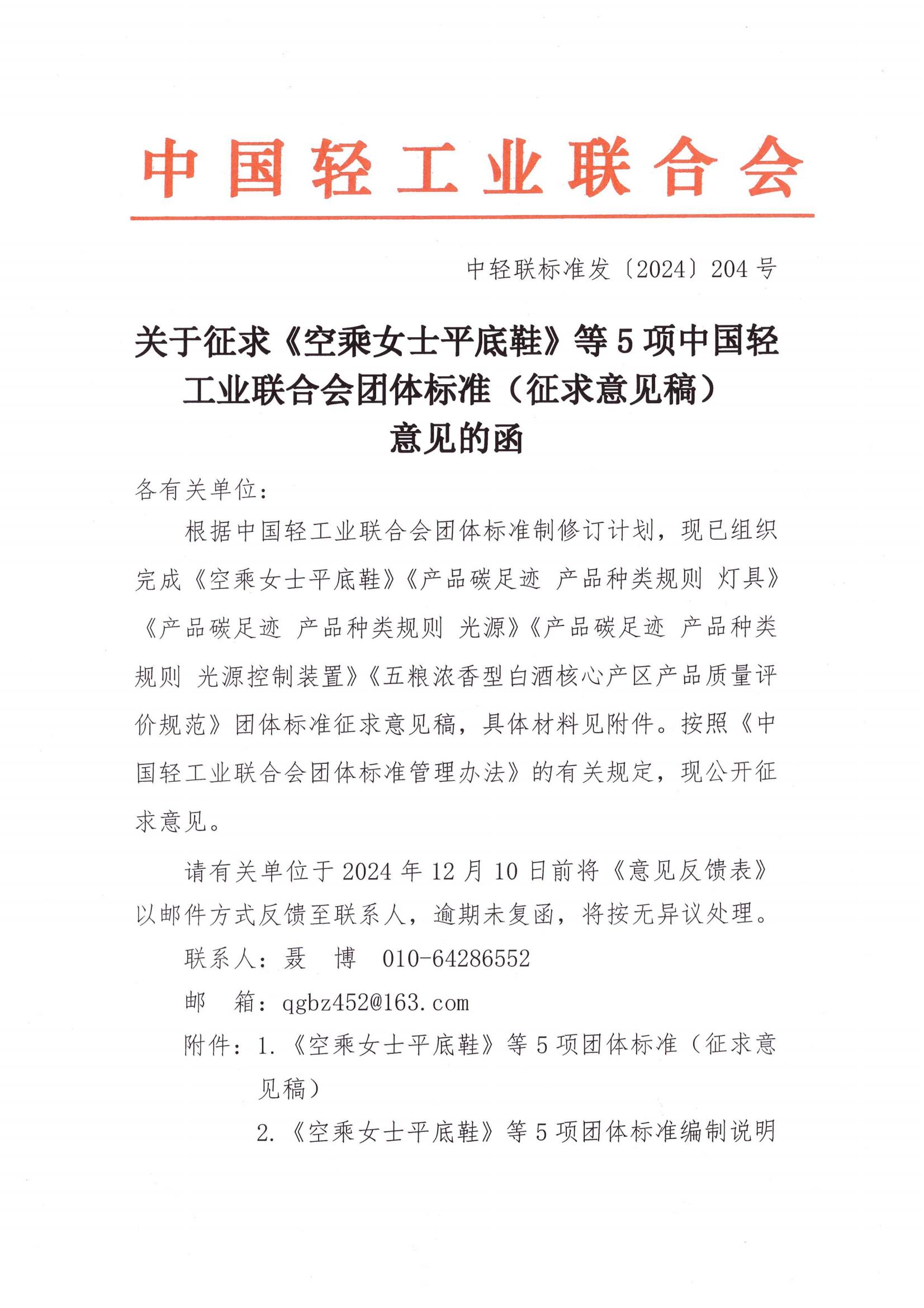 關(guān)于征求《空乘女士平底鞋》等5項(xiàng)中國(guó)輕工業(yè)聯(lián)合會(huì)團(tuán)體標(biāo)準(zhǔn)(征求意見稿)意見的函
