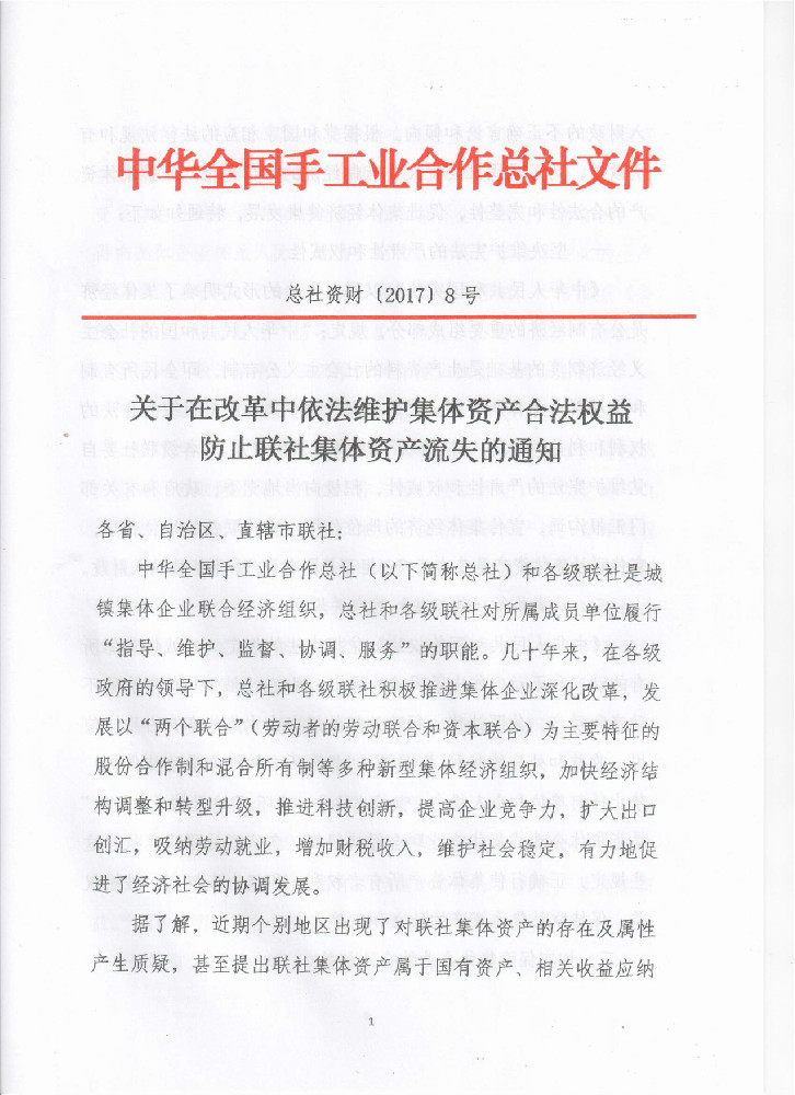 關(guān)于在改革中依法維護集體資產(chǎn)合法權(quán)益防止聯(lián)社集體資產(chǎn)流失的通知