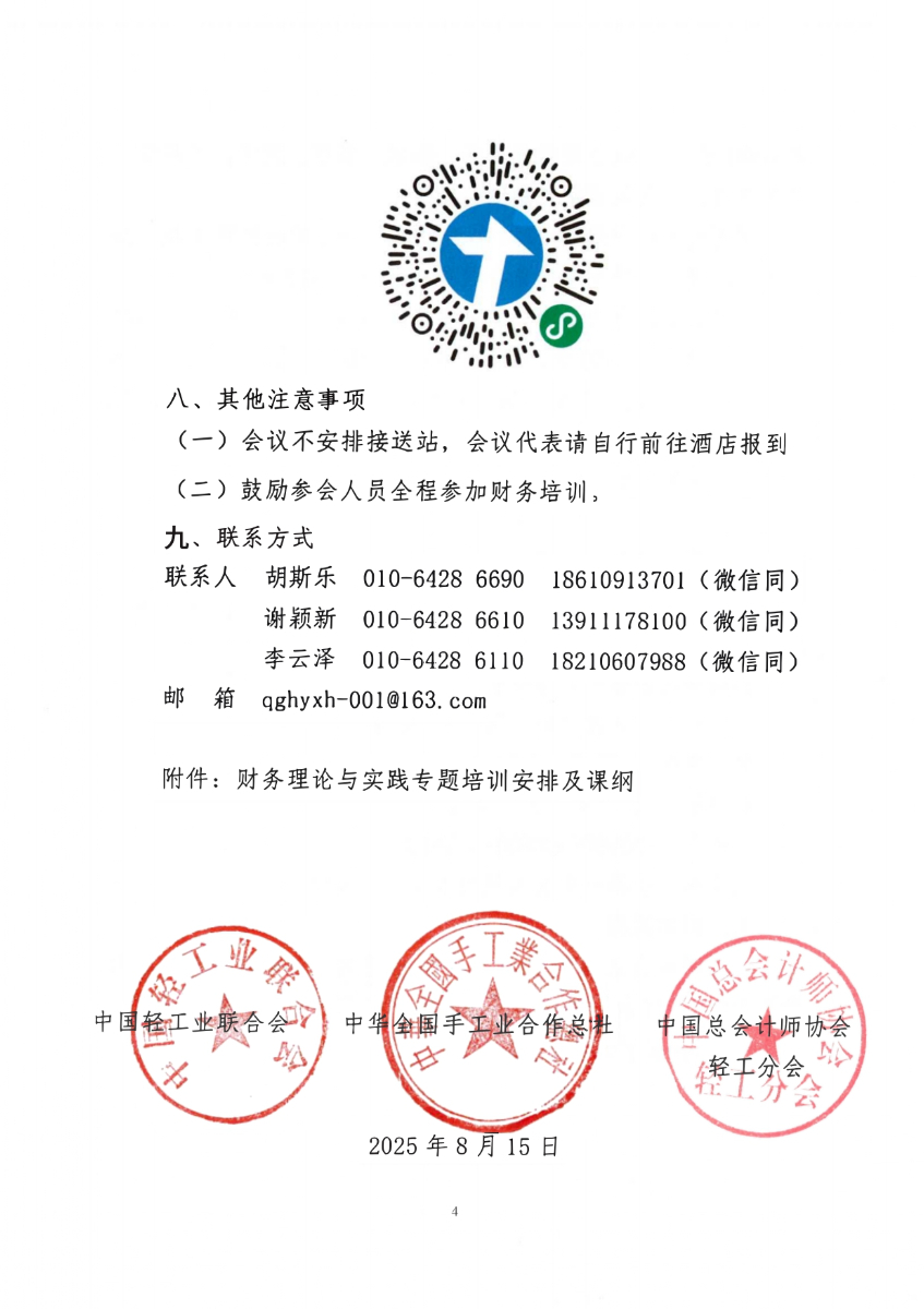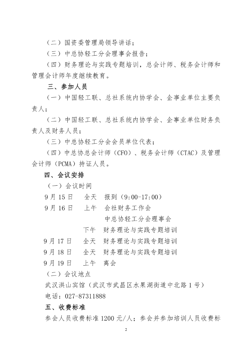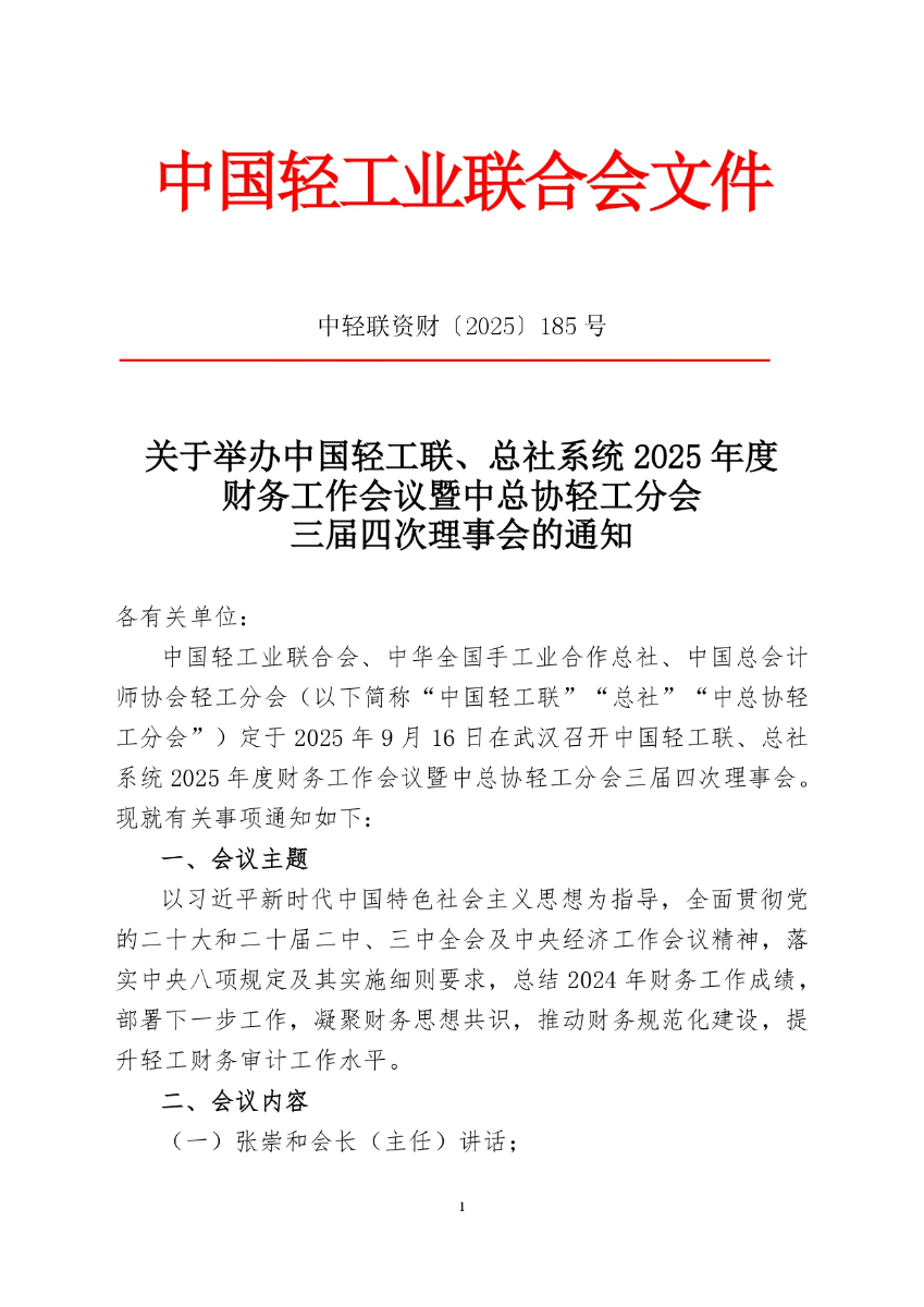 關(guān)于舉辦中國輕工聯(lián)、總社系統(tǒng)2025年度財務(wù)工作會議暨中總協(xié)輕工分會三屆四次理事會的通知
