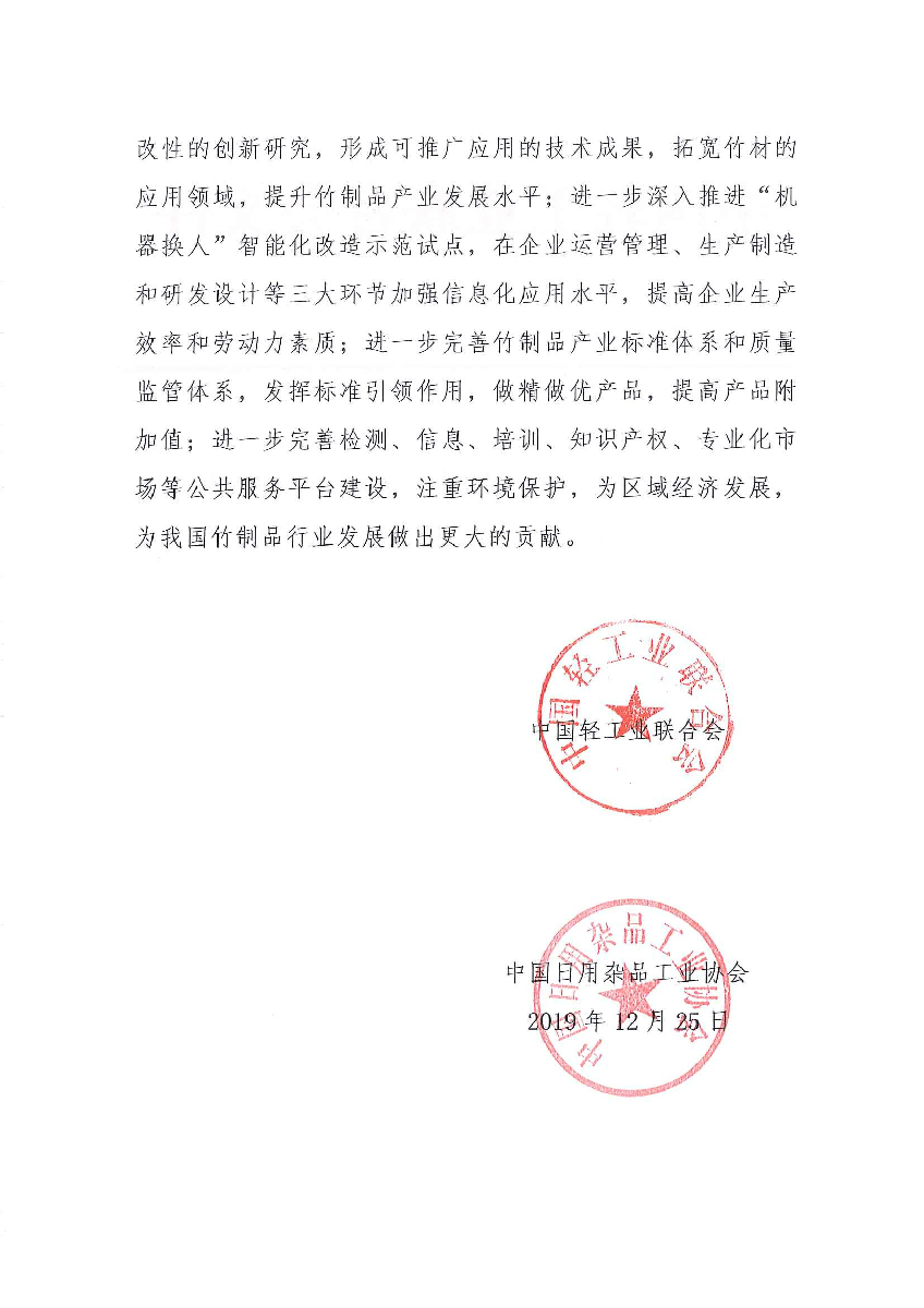 關(guān)于繼續(xù)授予浙江省慶元縣“中國竹制品產(chǎn)業(yè)基地·慶元”稱號的通知