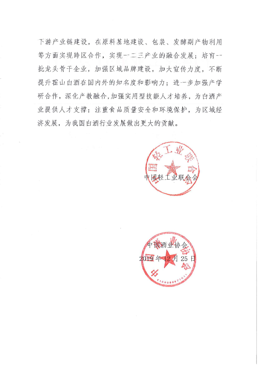 關于授予安徽省六安市霍山縣“中國白酒之鄉(xiāng)·霍山”稱號的通知