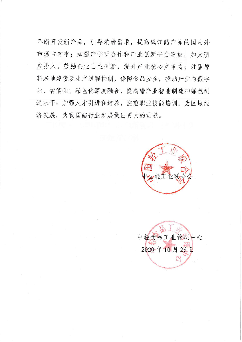 關(guān)于授予江蘇省鎮(zhèn)江市“中國醋都·鎮(zhèn)江”稱號的通知