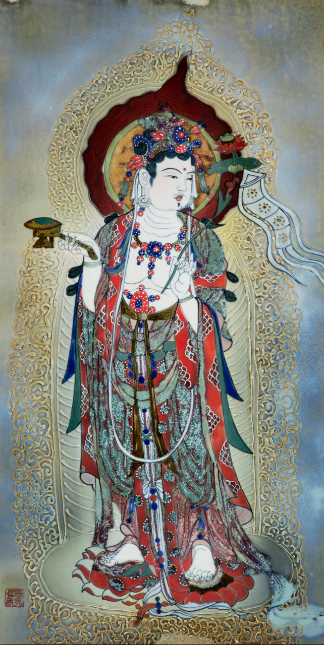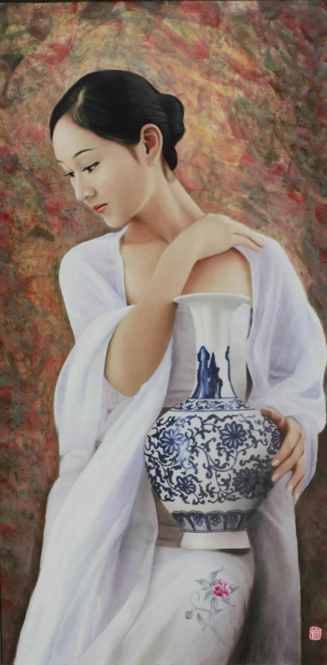 瓷板畫是瓷亦是畫,它是陶瓷工藝擺脫純工藝,融入文人繪畫而形成的陶瓷新門類。與紙帛等材質(zhì)的繪畫作品相比,瓷板畫具有獨特的細膩質(zhì)感和高雅純凈。裴大師瓷板畫作品形式新穎,融入現(xiàn)代工藝和制瓷理念,同時打破傳統(tǒng)人物肖像畫描摹的模式,大量運用國畫和油畫的表現(xiàn)手法,使用粉彩、新彩和墨彩描金等彩繪工藝,所繪山水色彩豐富飽滿,線條生動流暢,人物形象惟妙惟肖,靈動傳神,整體畫面層次分明、立體感強。裴大師一支畫筆繪就廣闊天地,一塊瓷板展現(xiàn)百態(tài)世間,纖毫間瓷魂終顯,粉末間生機無限。