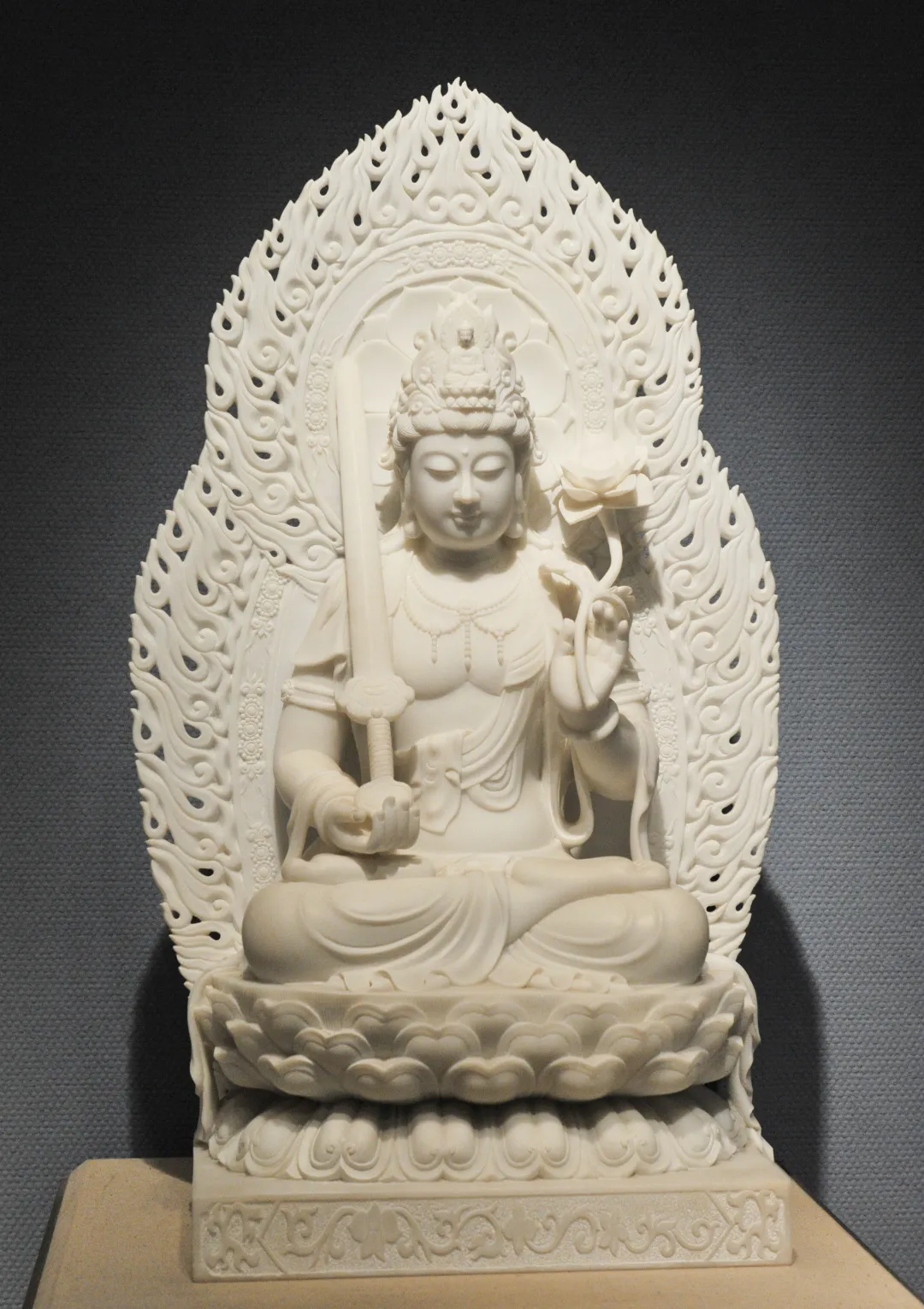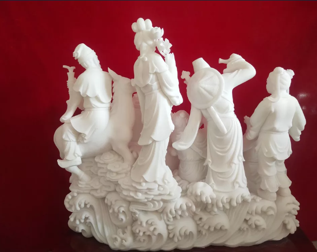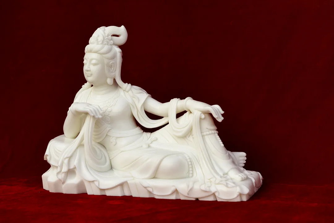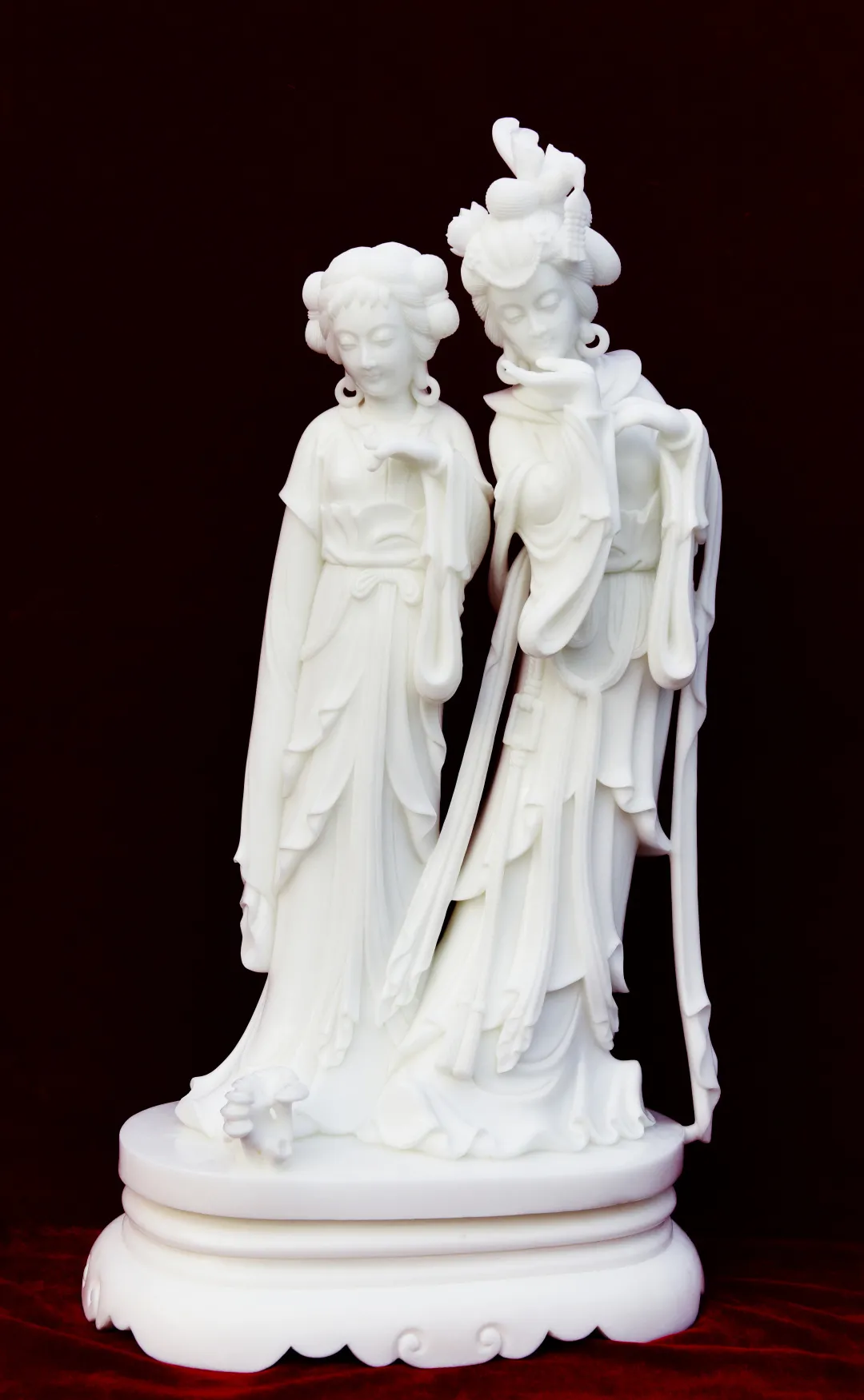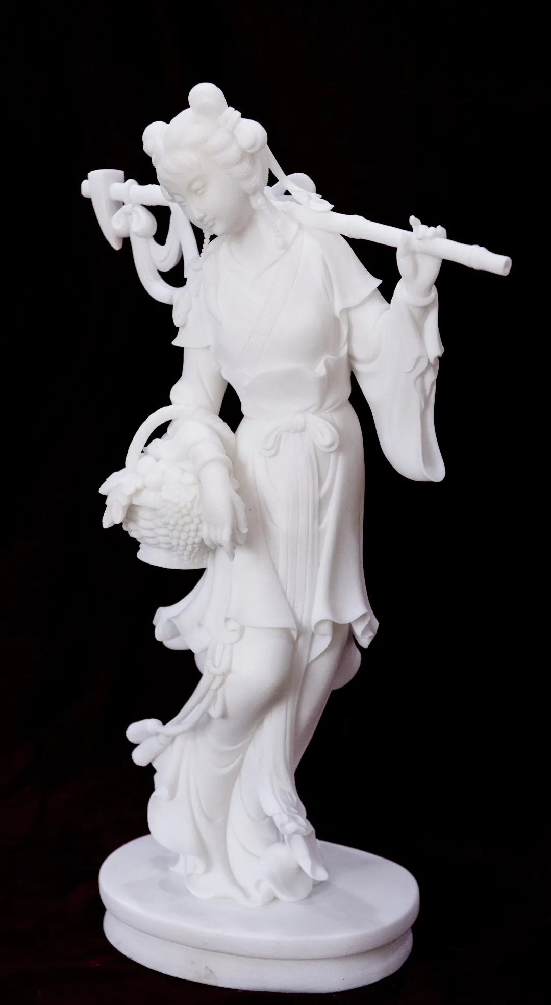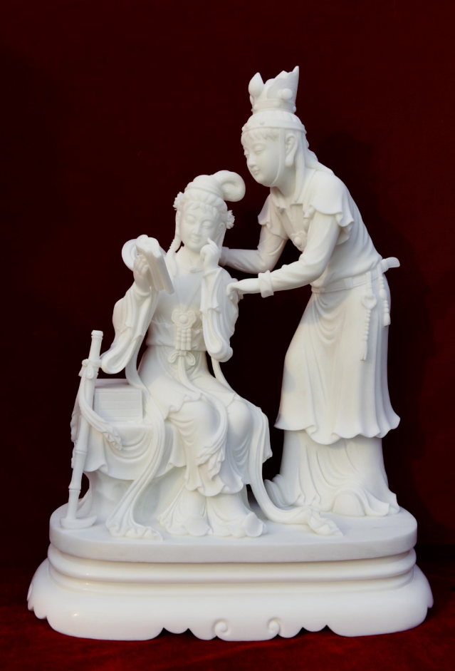 作品根據(jù)詩(shī)人白居易的詩(shī)詞意境創(chuàng)作,以?xún)?yōu)質(zhì)漢白玉為原料,通過(guò)精湛的雕刻技藝,把無(wú)語(yǔ)的石頭演化成一尊具有生命力的作品,給人一種莊嚴(yán)肅穆的美感。