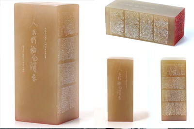 金石雕刻與微雕《孫子兵法與三十六計(jì)》長5厘米,寬5厘米,高15厘米。作品采用遼寧凍石,潔凈無瑕,經(jīng)精心構(gòu)思,以歷史典故為體裁,將《孫子兵法》及其精典《三十六計(jì)》篆刻微雕于石章側(cè)面,賦章料以歷史內(nèi)涵和藝術(shù)價(jià)值。