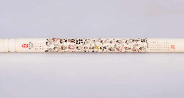 象牙毛筆彩色微雕《二十九屆奧林匹克運(yùn)動(dòng)會(huì)運(yùn)動(dòng)項(xiàng)目三十八項(xiàng)福娃》長20厘米,寬1厘米。作品選用三十八項(xiàng)奧林匹克運(yùn)動(dòng)項(xiàng)目的中國福娃,身姿各異,福氣玲瓏,栩栩如生。