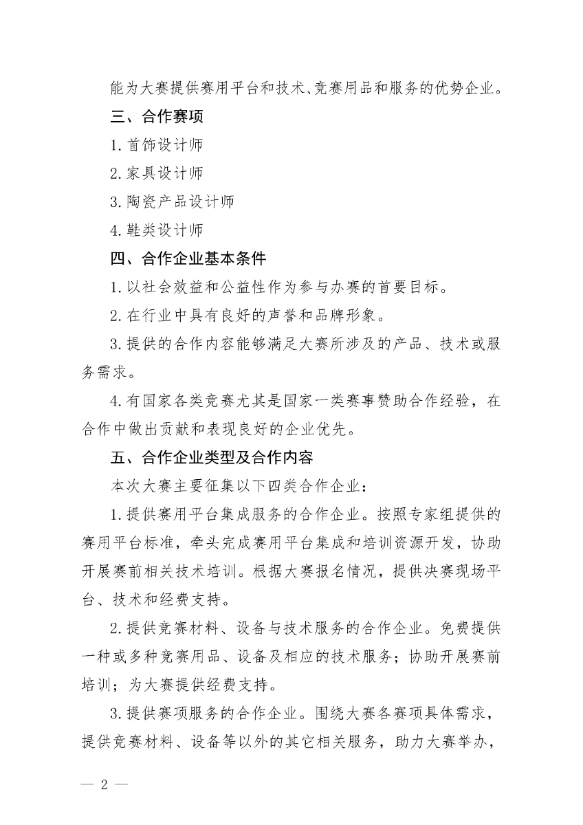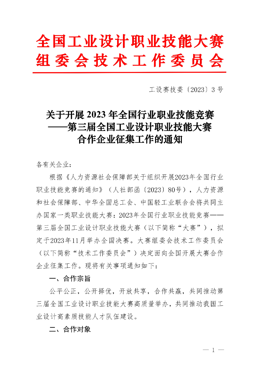 關(guān)于開展第三屆全國工業(yè)設(shè)計職業(yè)技能大賽合作企業(yè)征集工作的通知