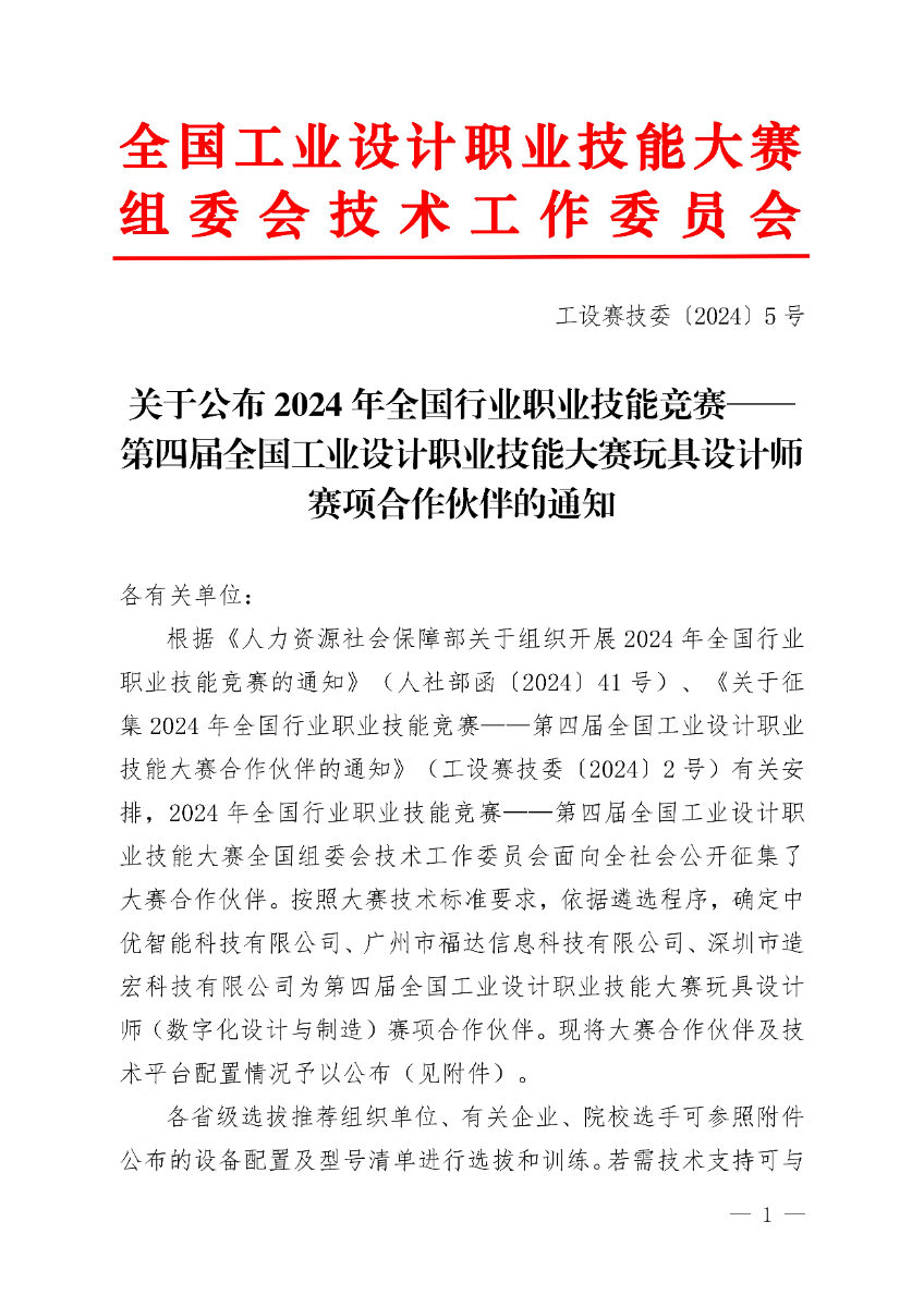 關(guān)于公布2024年第四屆全國(guó)工業(yè)設(shè)計(jì)職業(yè)技能大賽玩具設(shè)計(jì)師賽項(xiàng)合作伙伴的通知