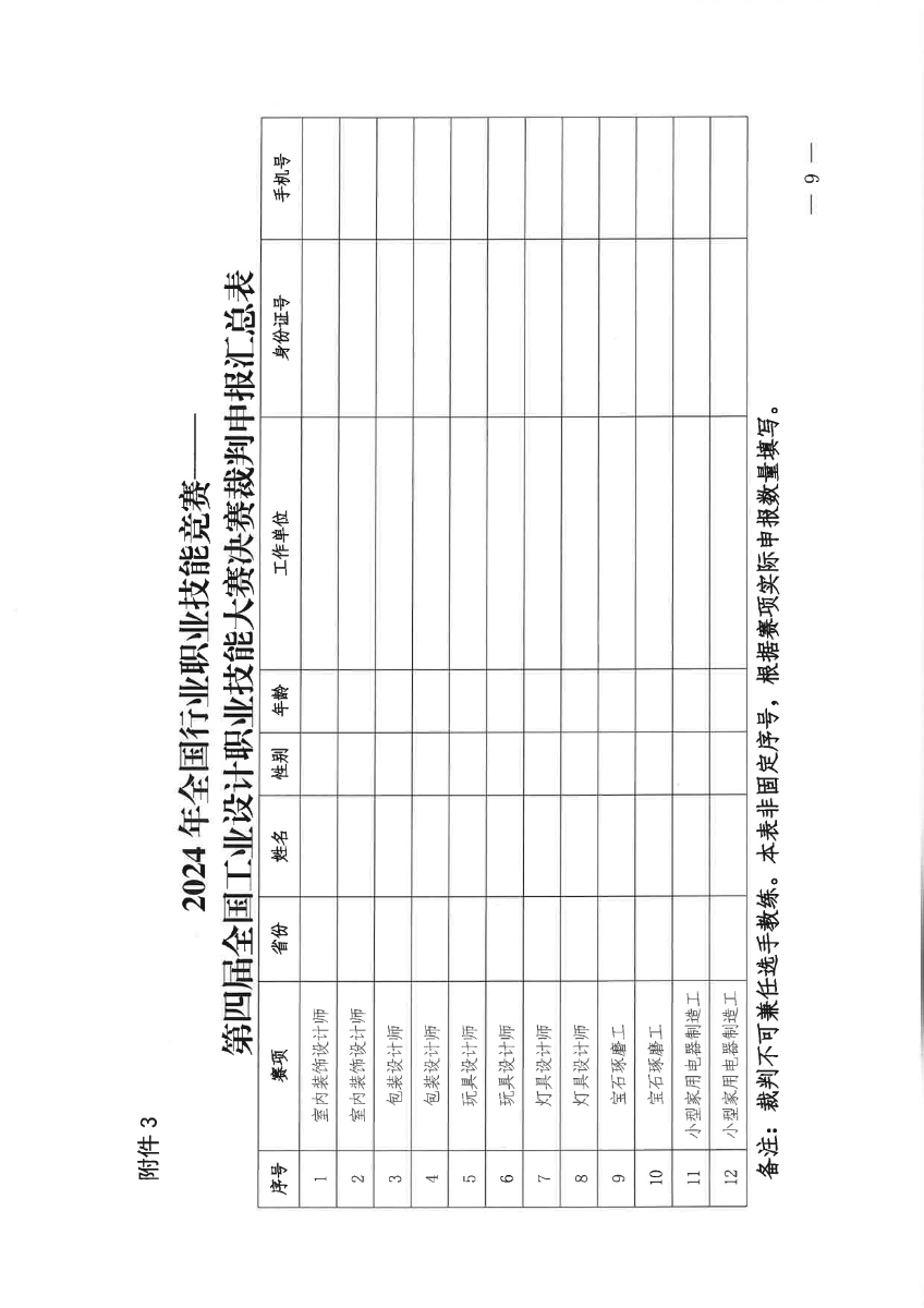 附件3 2024年第四屆全國(guó)工業(yè)設(shè)計(jì)職業(yè)技能大賽決賽裁判申報(bào)匯總表.docx