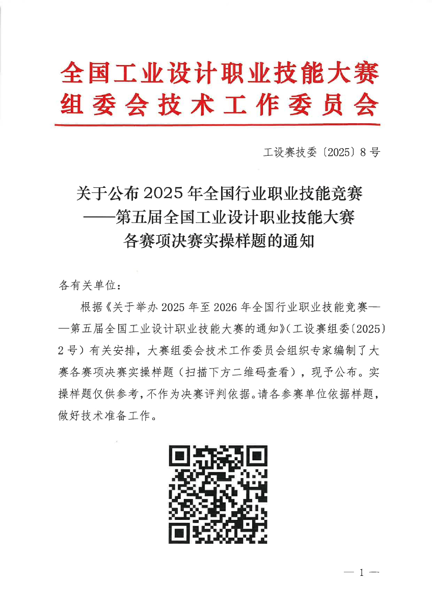 關(guān)于公布2025年第五屆全國工業(yè)設(shè)計(jì)職業(yè)技能大賽決賽實(shí)操樣題的通知
