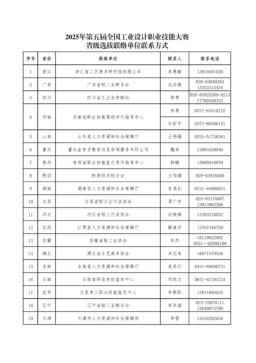 2025年第五屆全國工業(yè)設(shè)計職業(yè)技能大賽省級選拔聯(lián)絡(luò)單位聯(lián)系方式