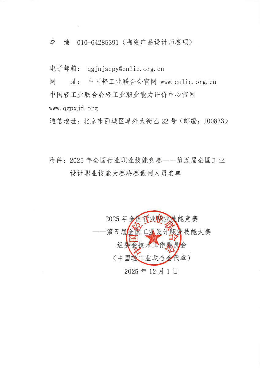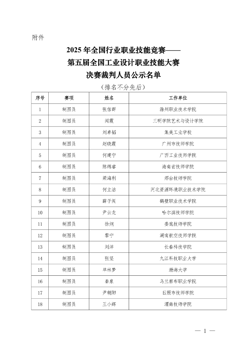 關(guān)于公示2025年全國(guó)行業(yè)職業(yè)技能競(jìng)賽——第五屆全國(guó)工業(yè)設(shè)計(jì)職業(yè)技能大賽決賽裁判人員名單的通知