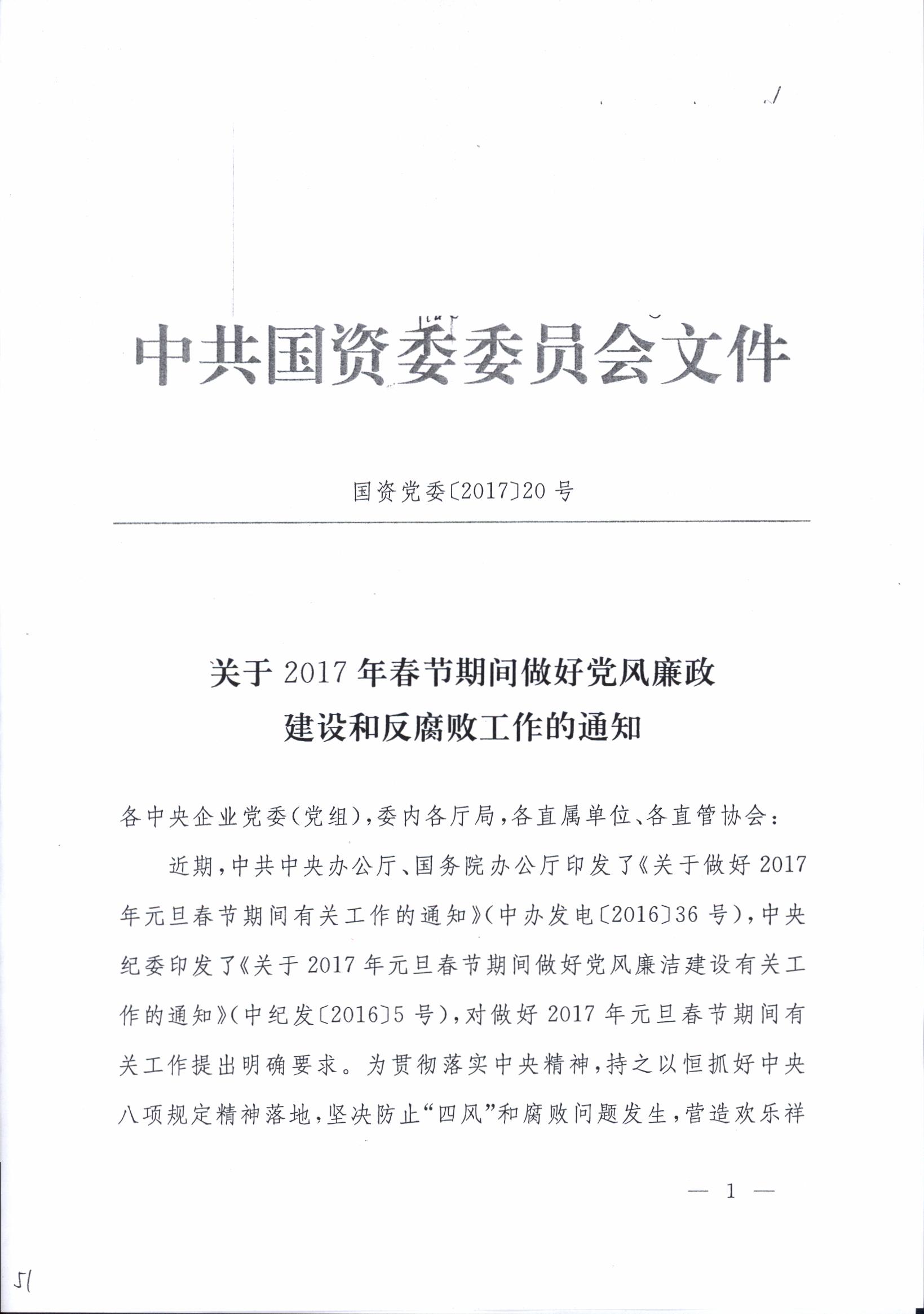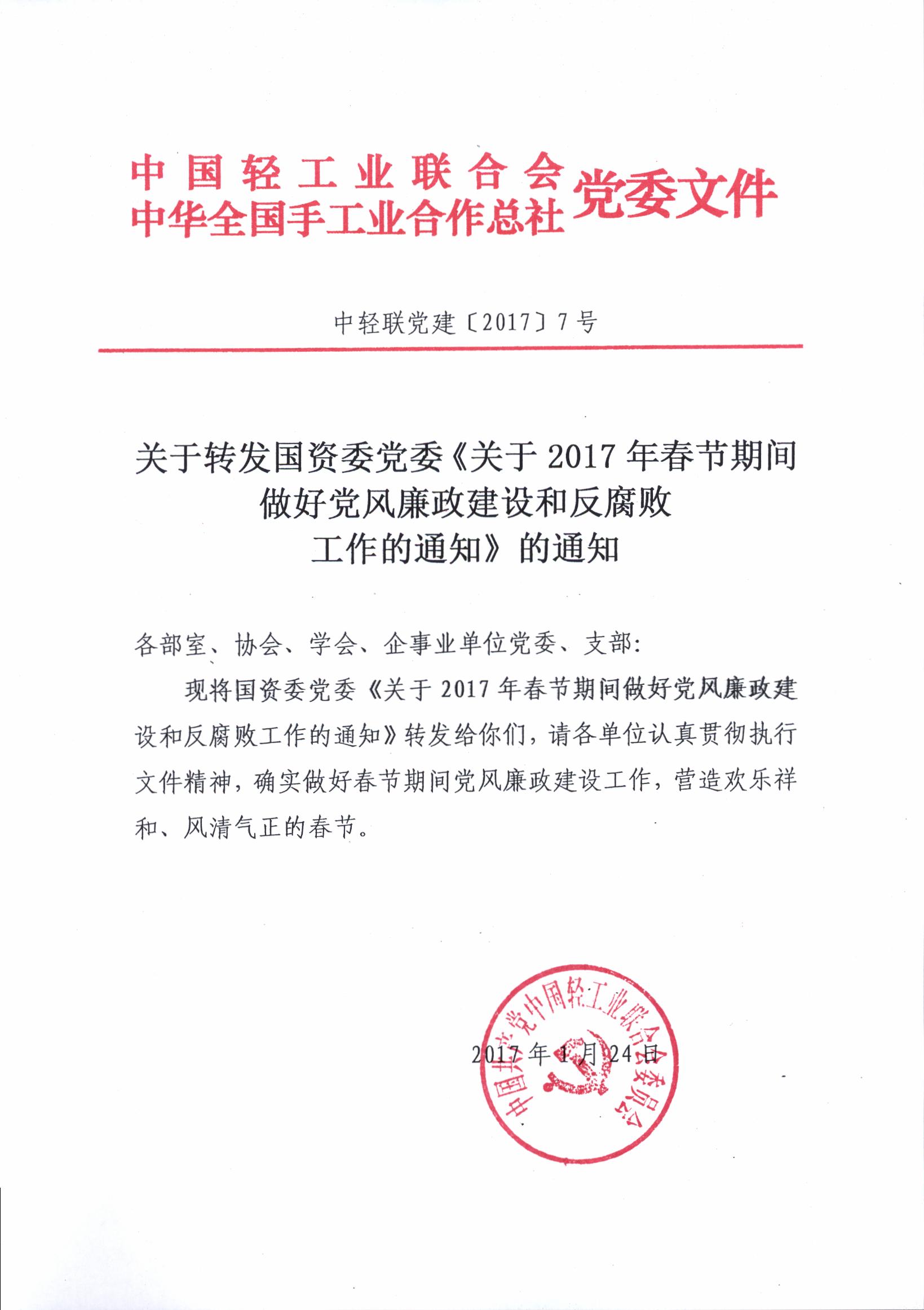 關(guān)于轉(zhuǎn)發(fā)國(guó)資委黨委《關(guān)于2017年春節(jié)期間做好黨風(fēng)廉政建設(shè)和反腐敗工作的通知》的通知