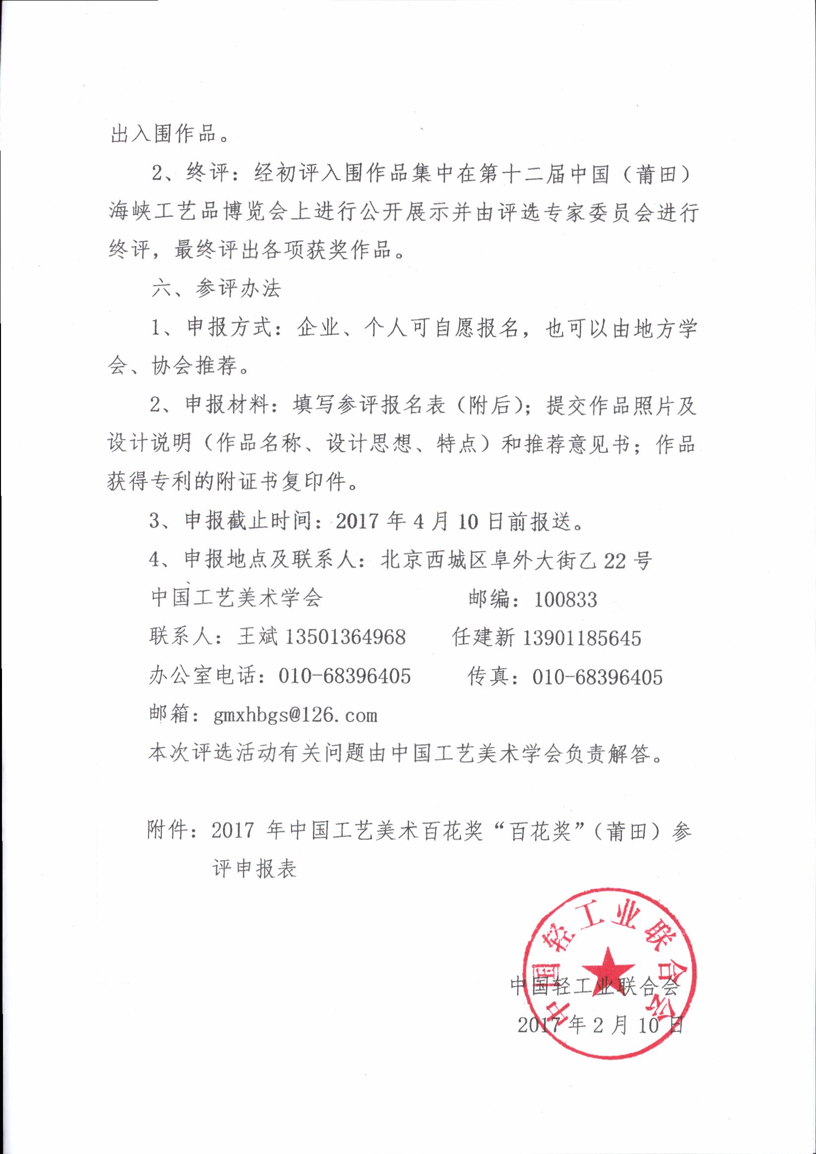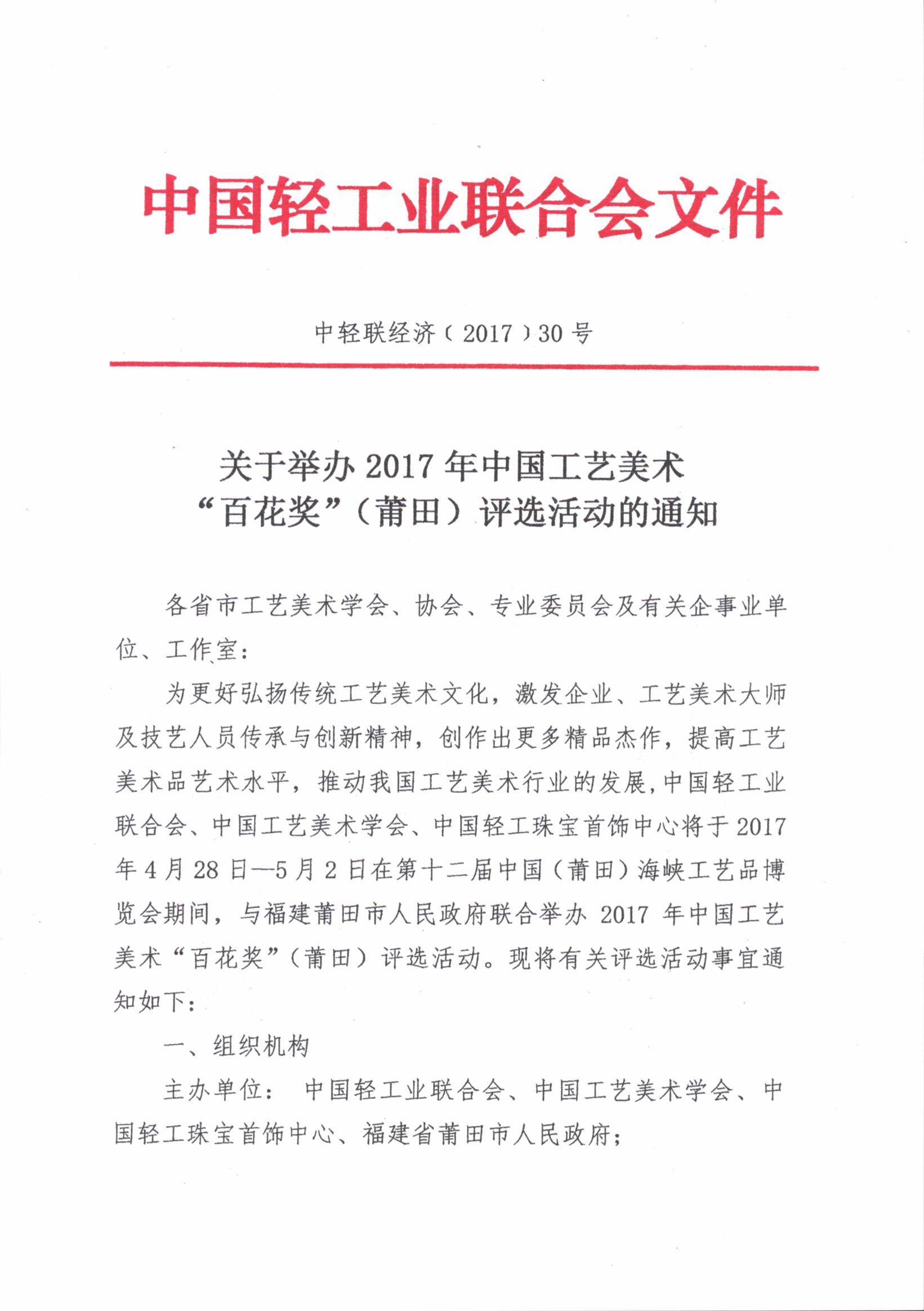 關(guān)于舉辦2017年中國工藝美術(shù)“百花獎”(莆田)評選活動的通知