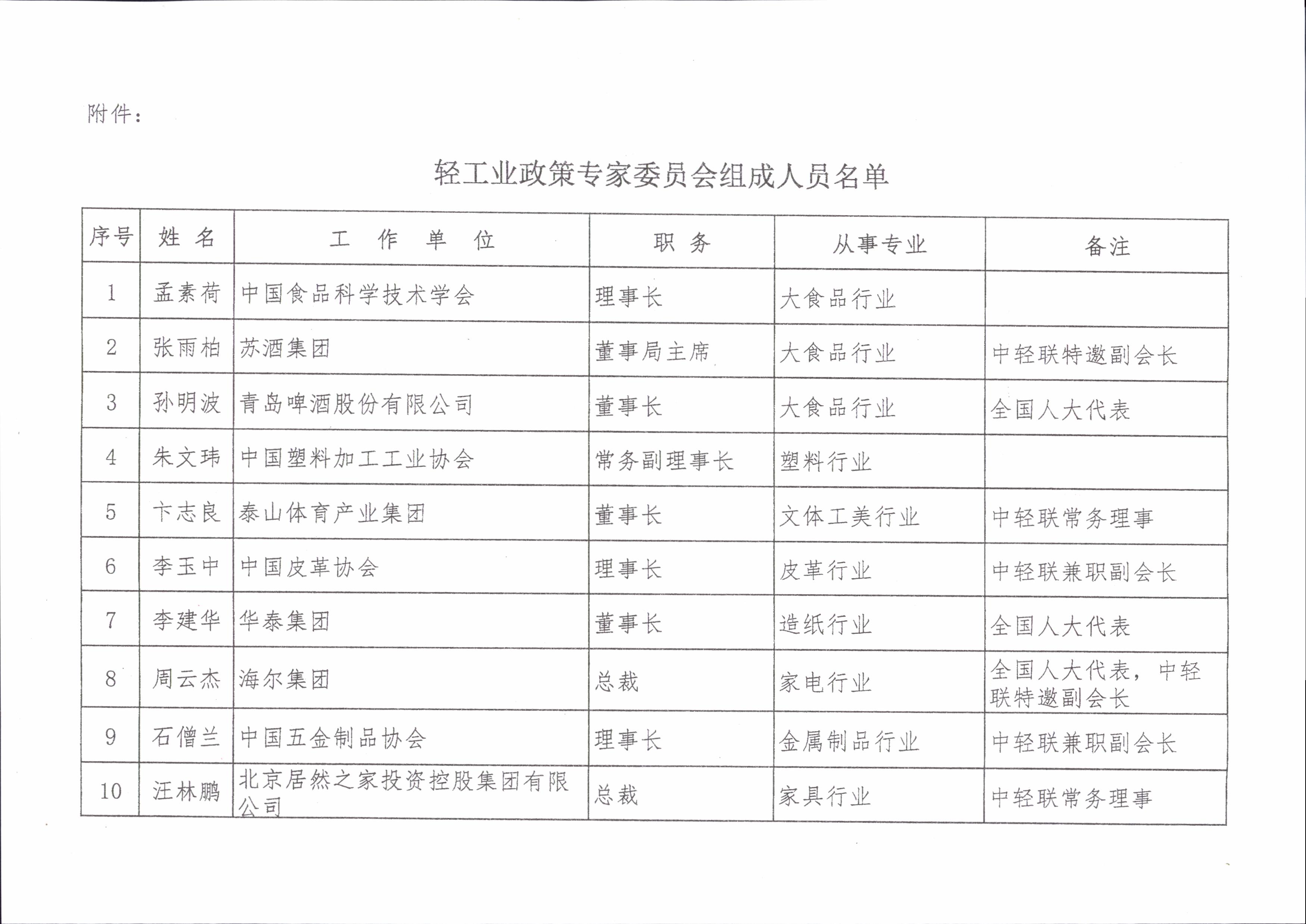 輕工業(yè)政策專家委員會組成人員名單1
