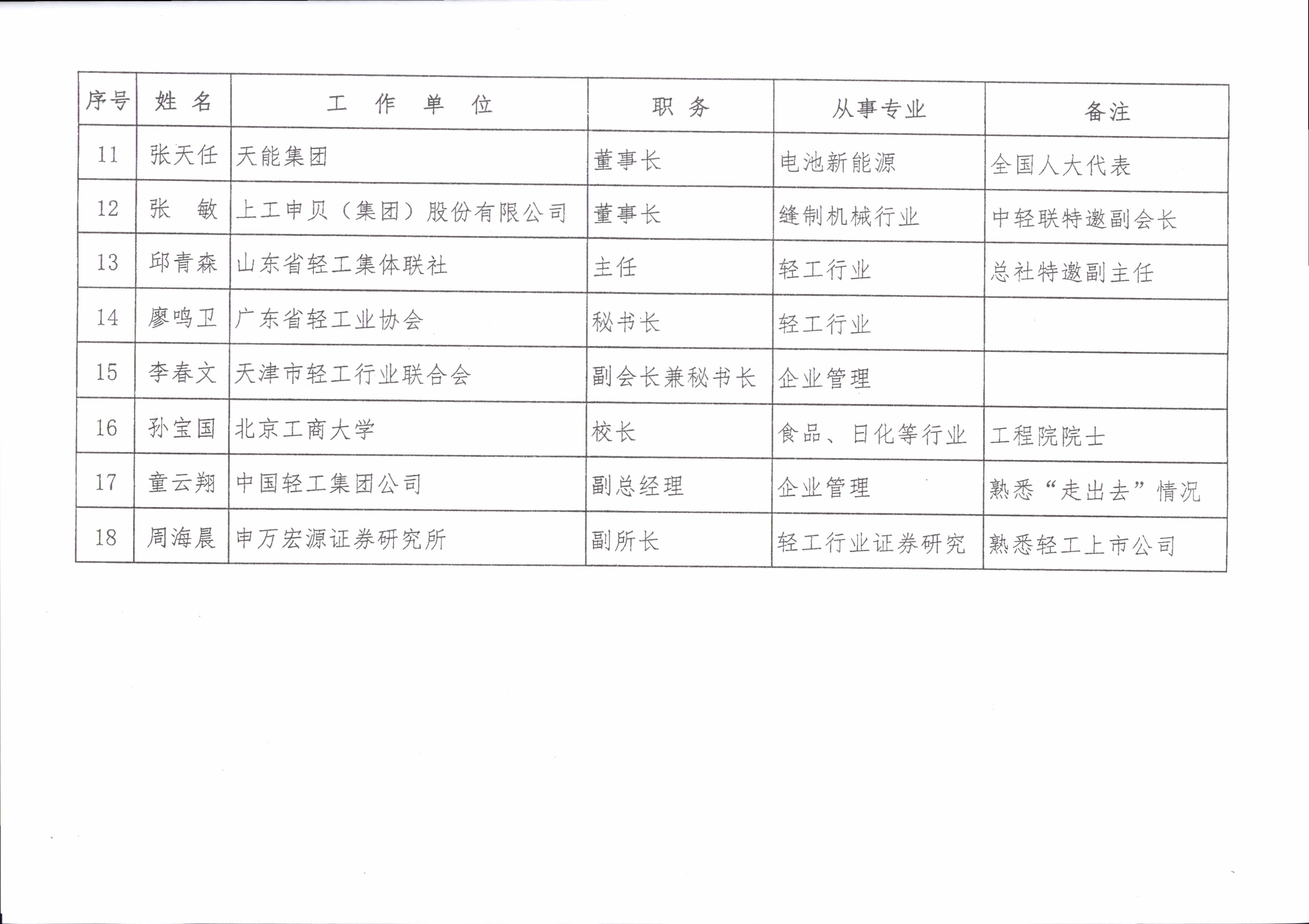 輕工業(yè)政策專家委員會組成人員名單2