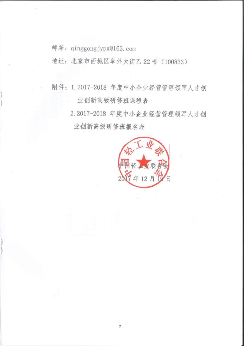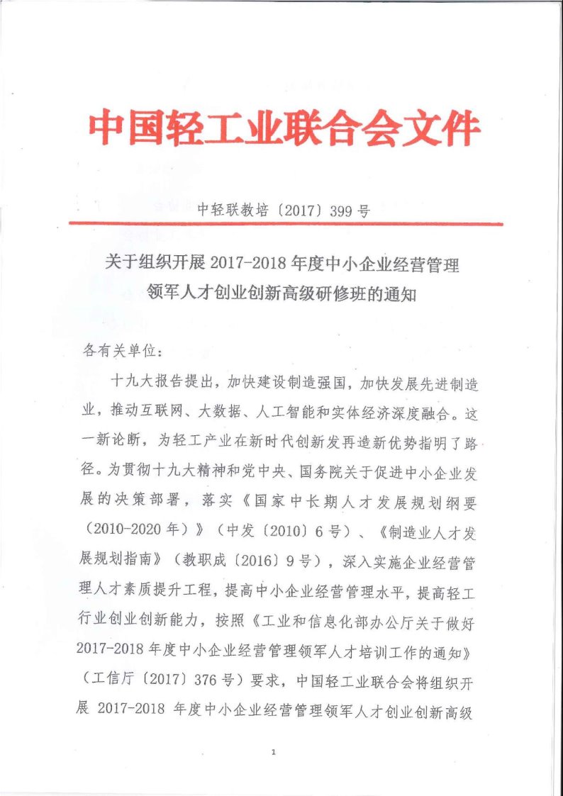 關于組織開展2017-2018年度中小企業(yè)經營管理領軍人才創(chuàng)業(yè)創(chuàng)新高級研修班的通知