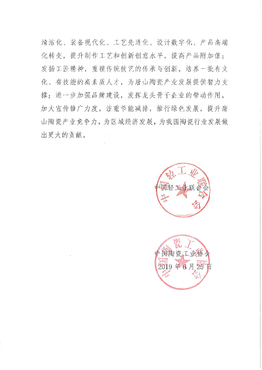 關于授予河北省唐山市"中國北方瓷都·唐山"稱號的通知