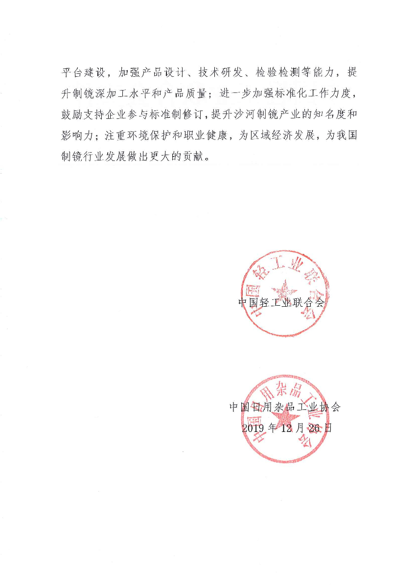 關(guān)于授予河北省沙河市“中國制鏡基地·沙河”稱號的通知