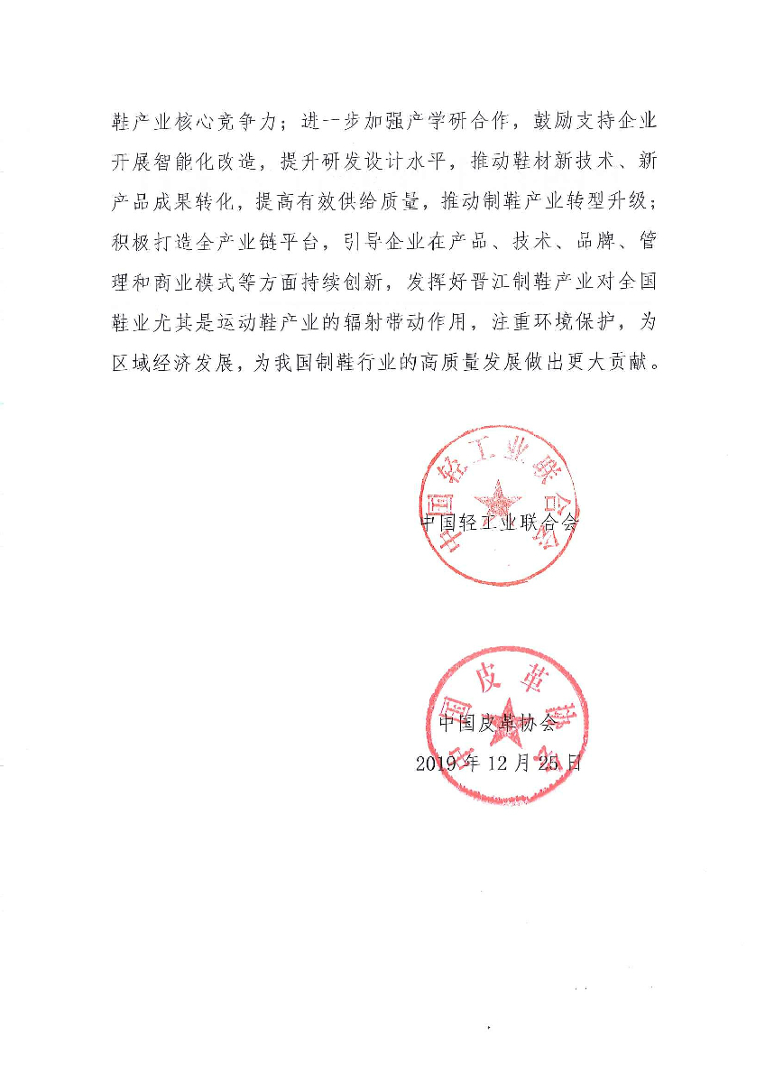 關(guān)于繼續(xù)授予福建省晉江市“中國(guó)鞋都·晉江”稱(chēng)號(hào)的通知
