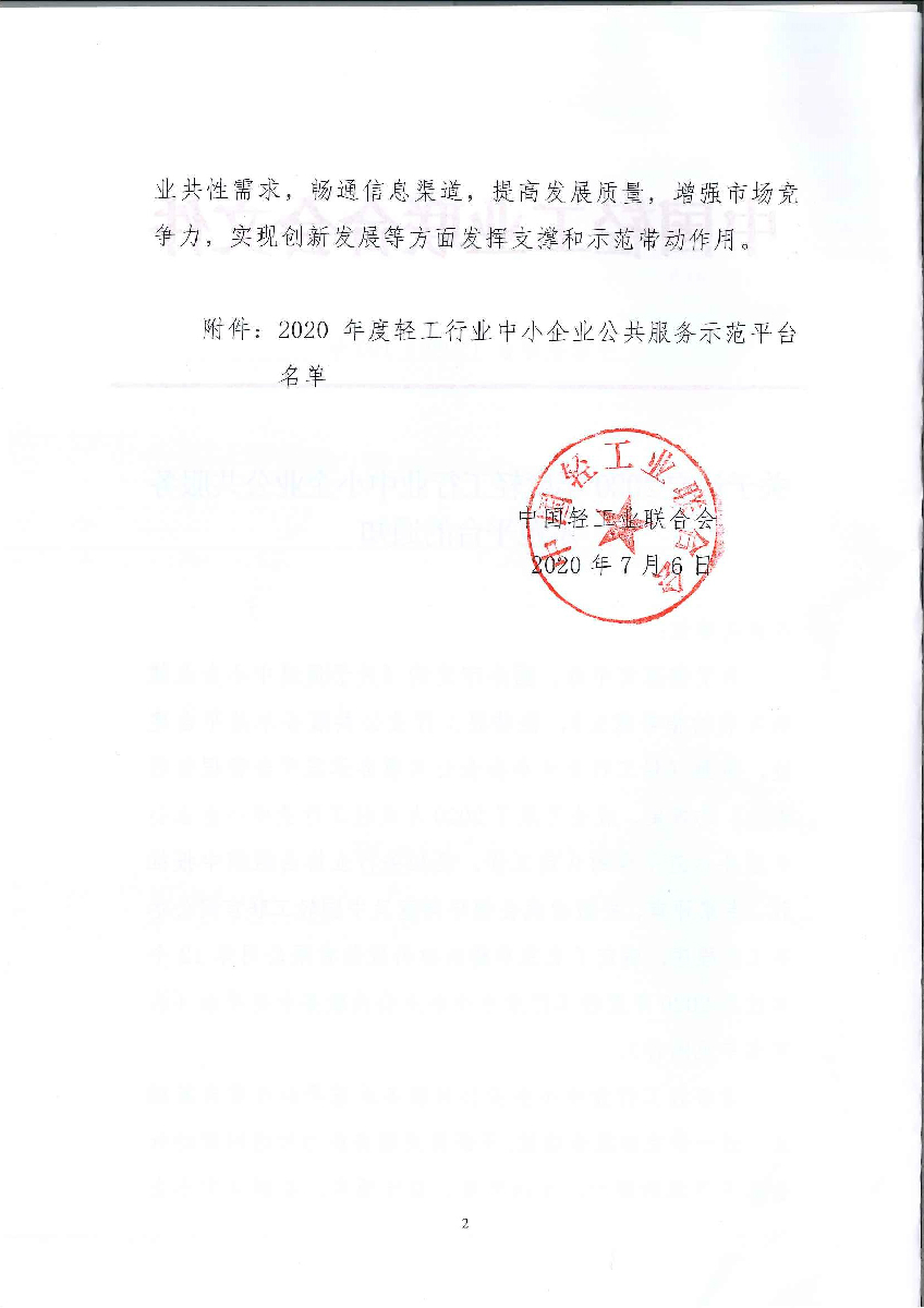 關(guān)于認(rèn)定2020年度輕工行業(yè)中小企業(yè)公共服務(wù)示范平臺(tái)的通知