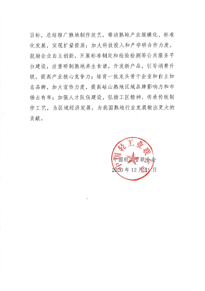 關于授予福建省永春縣岵山鎮(zhèn)“中國特色食品(九制熟地)之鄉(xiāng)·岵山”稱號的通知