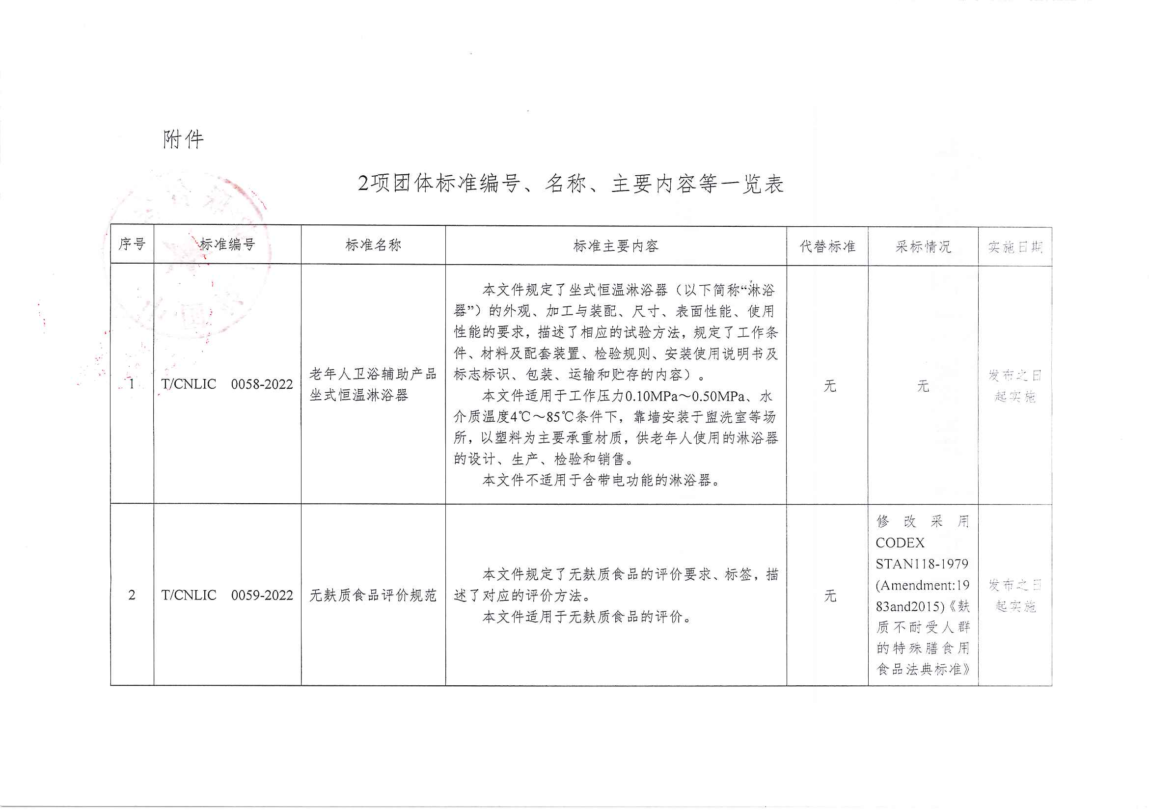 關于批準發(fā)布《老年人衛(wèi)浴輔助產(chǎn)品 坐式恒溫淋浴器》和《無麩質食品評價規(guī)范》等2項團體標準的公告