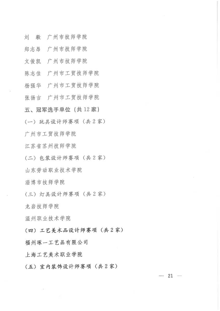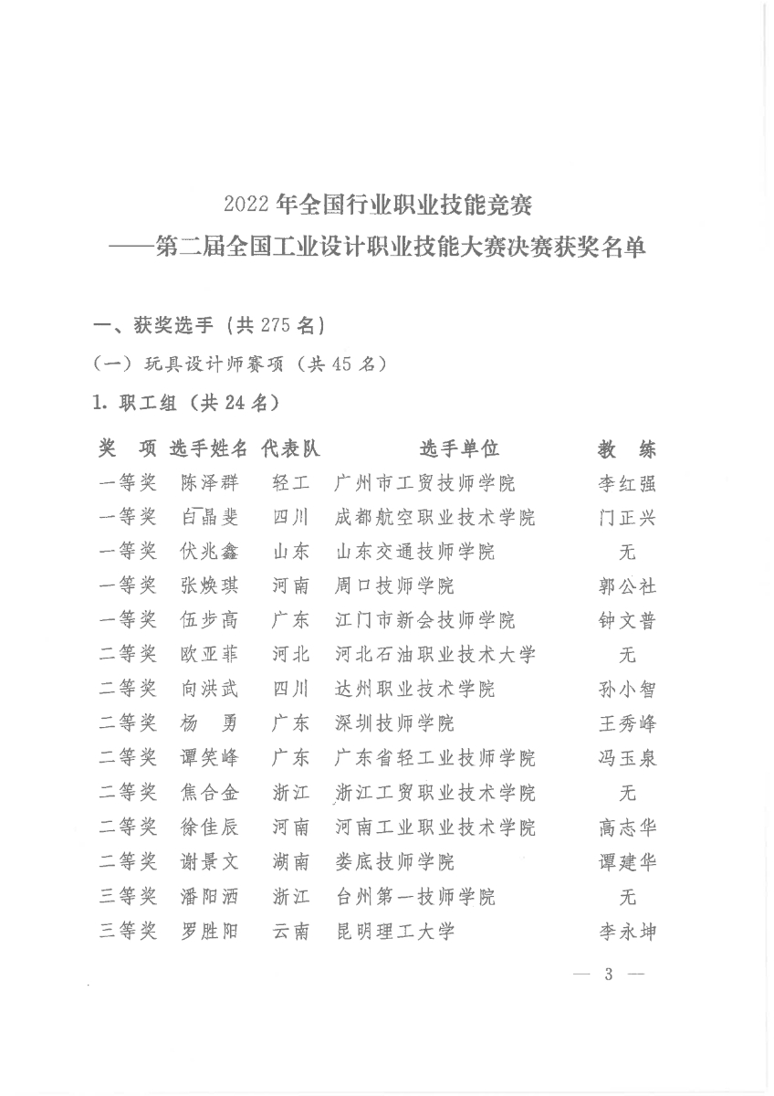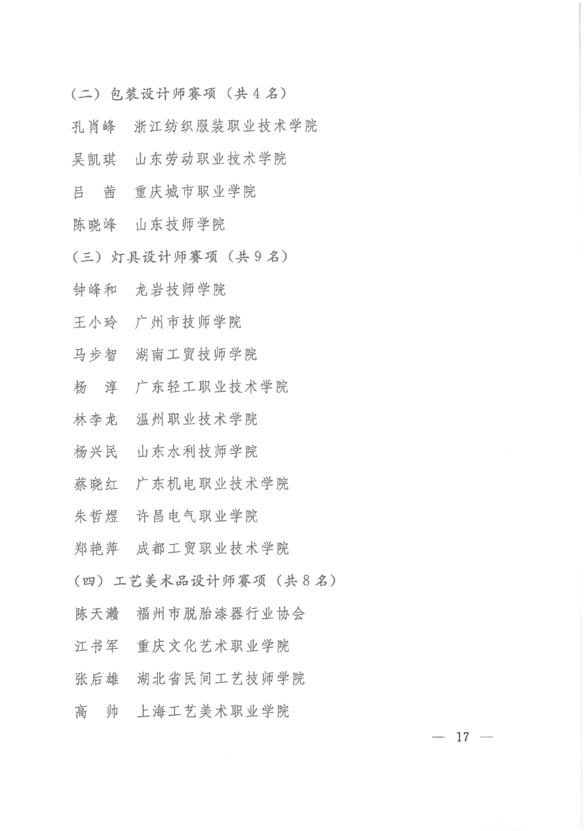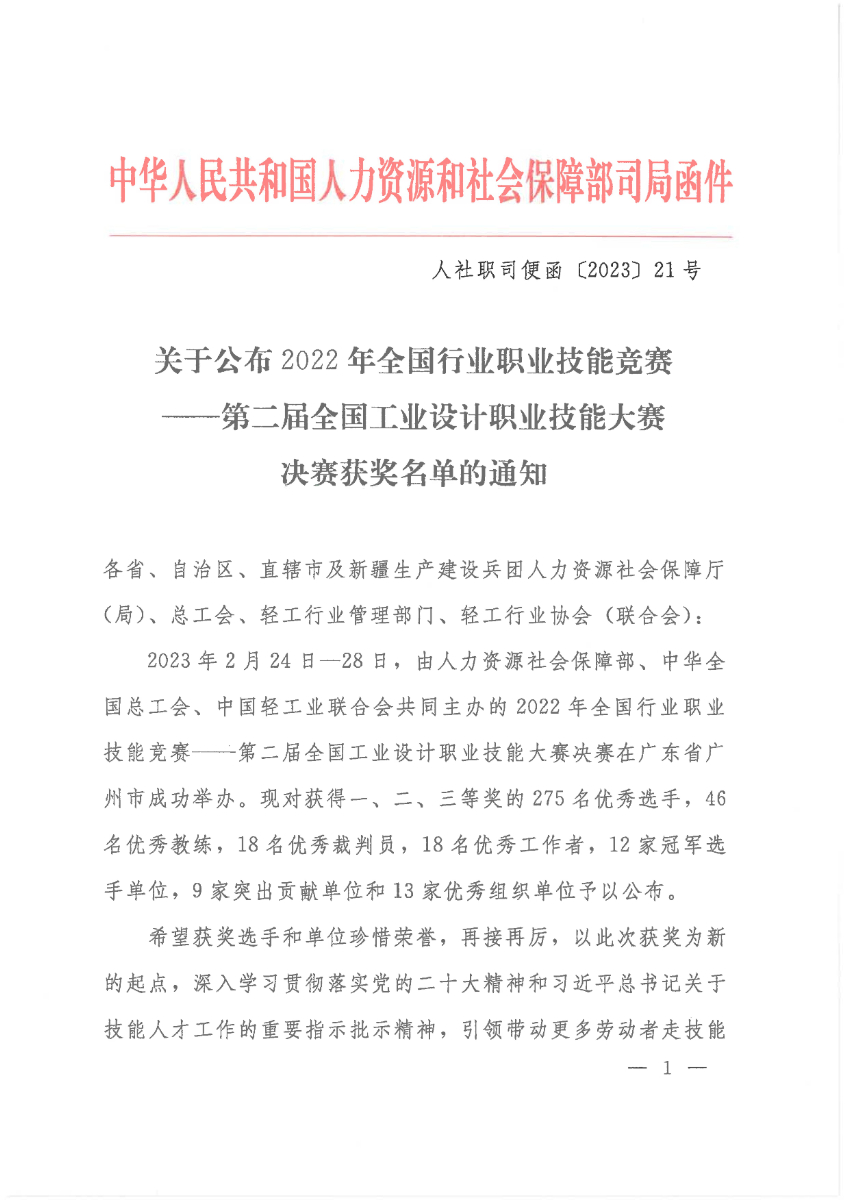 關(guān)于公布第二屆全國工業(yè)設(shè)計職業(yè)技能大賽決賽獲獎名單的通知