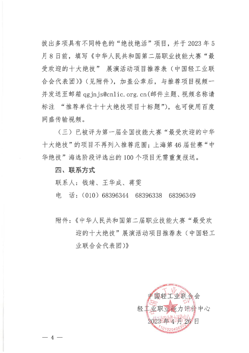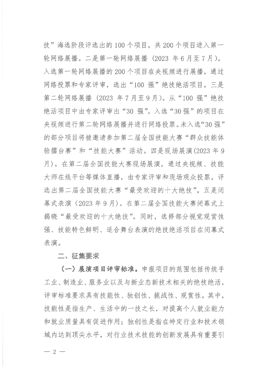 關(guān)于轉(zhuǎn)發(fā)《關(guān)于征集中華人民共和國第二屆職業(yè)技能大賽“最受歡迎的十大絕技”展演活動項目的通知》的通知