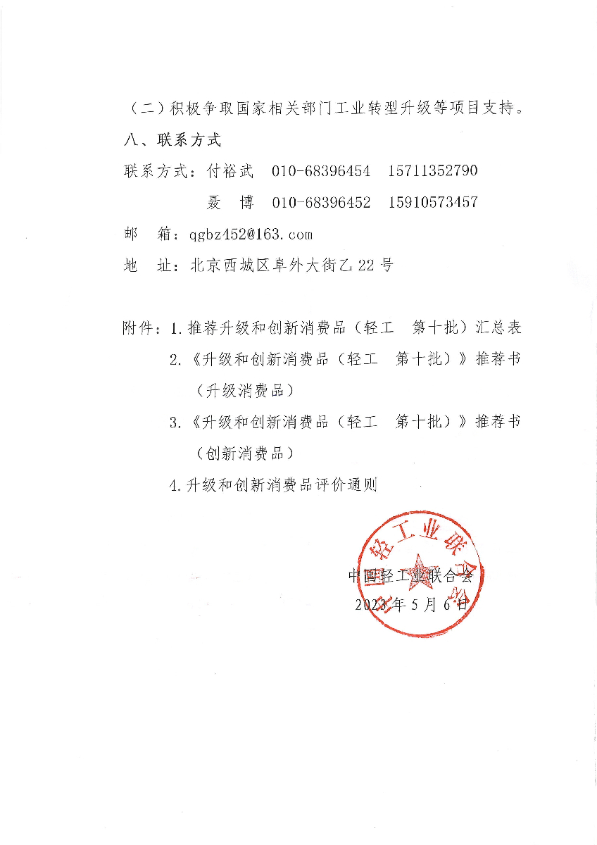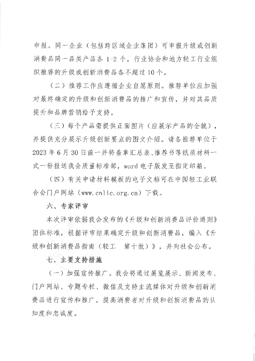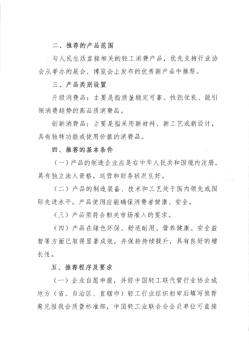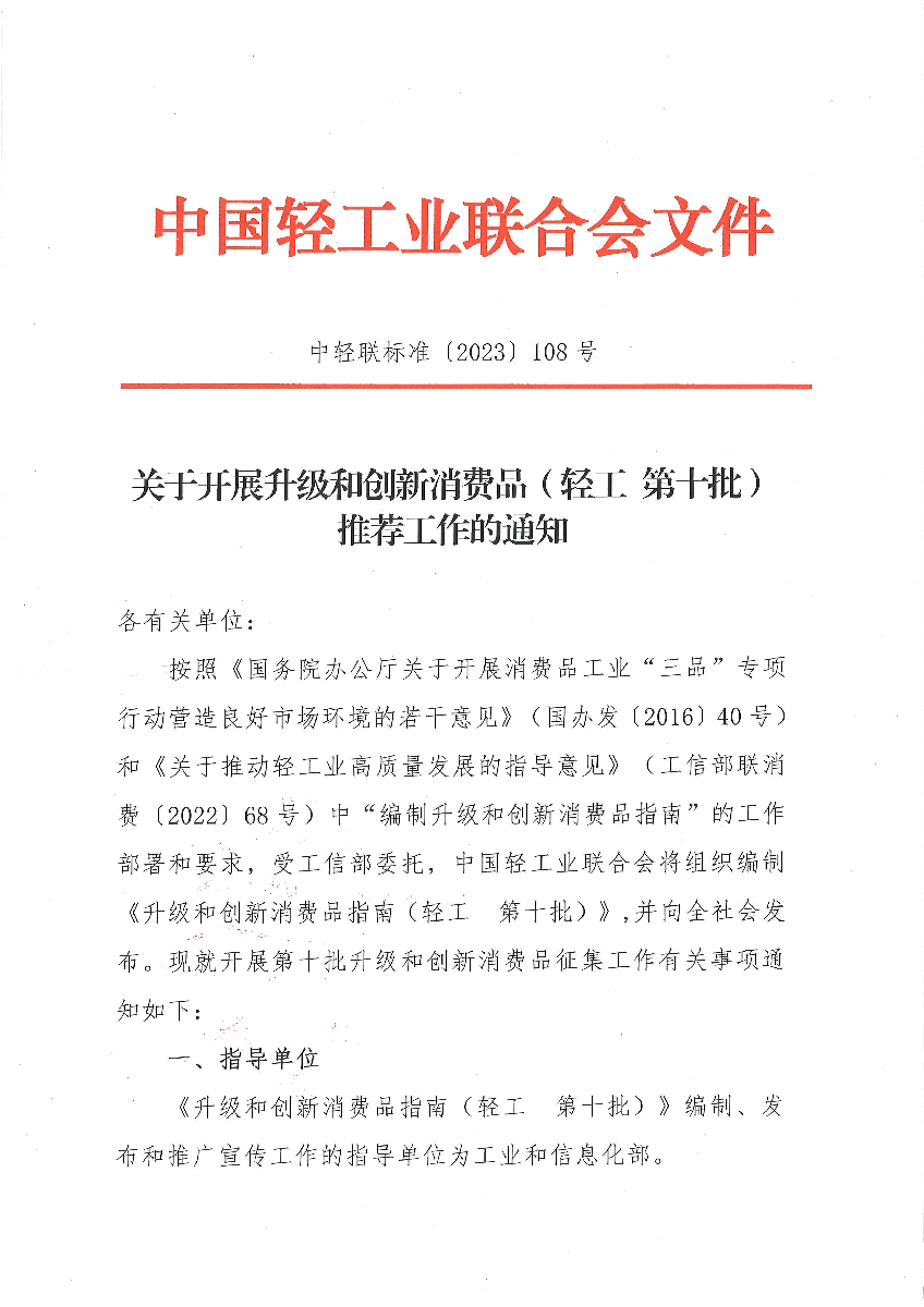 關(guān)于開展升級(jí)和創(chuàng)新消費(fèi)品(輕工 第十批)推薦工作的通知