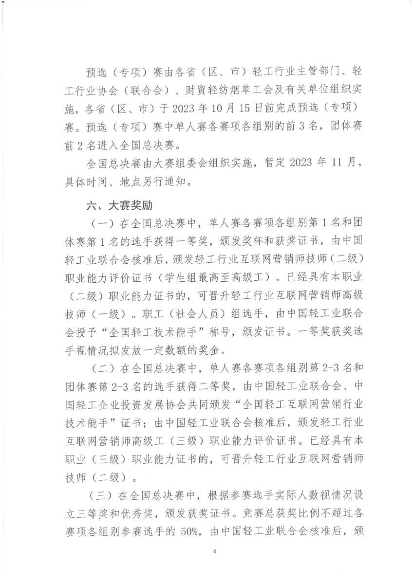 關(guān)于舉辦全國(guó)輕工第三屆互聯(lián)網(wǎng)營(yíng)銷師職業(yè)技能大賽的通知