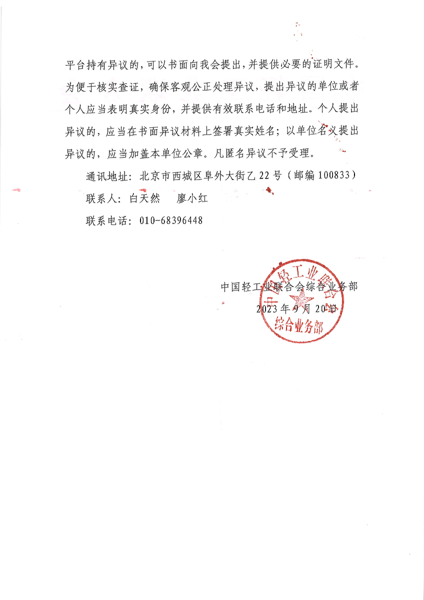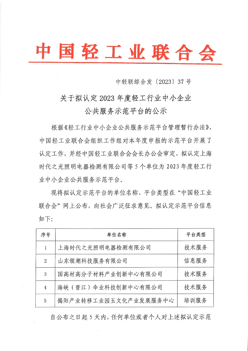 關(guān)于擬認定2023年度輕工行業(yè)中小企業(yè)公共服務示范平臺的公示