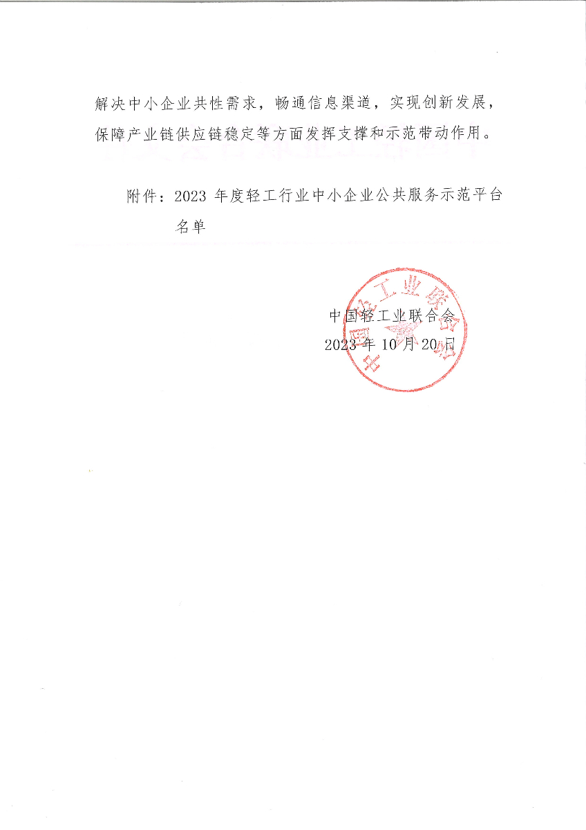 關(guān)于認(rèn)定2023年度輕工行業(yè)中小企業(yè)公共服務(wù)示范平臺的通知