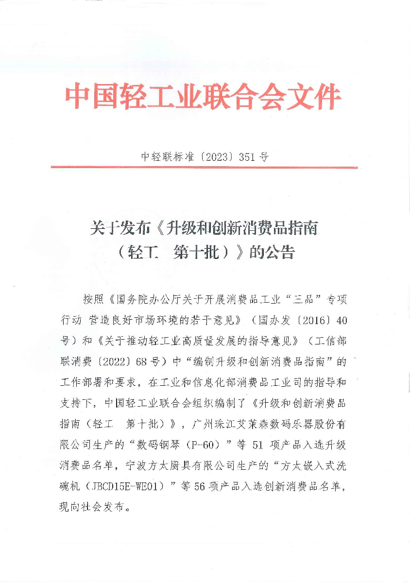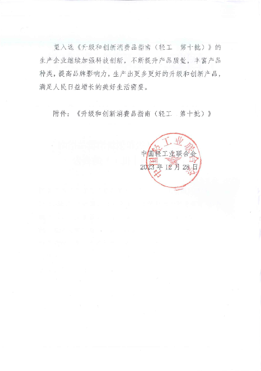 關(guān)于發(fā)布《升級(jí)和創(chuàng)新消費(fèi)品指南(輕工 第十批)》的公告