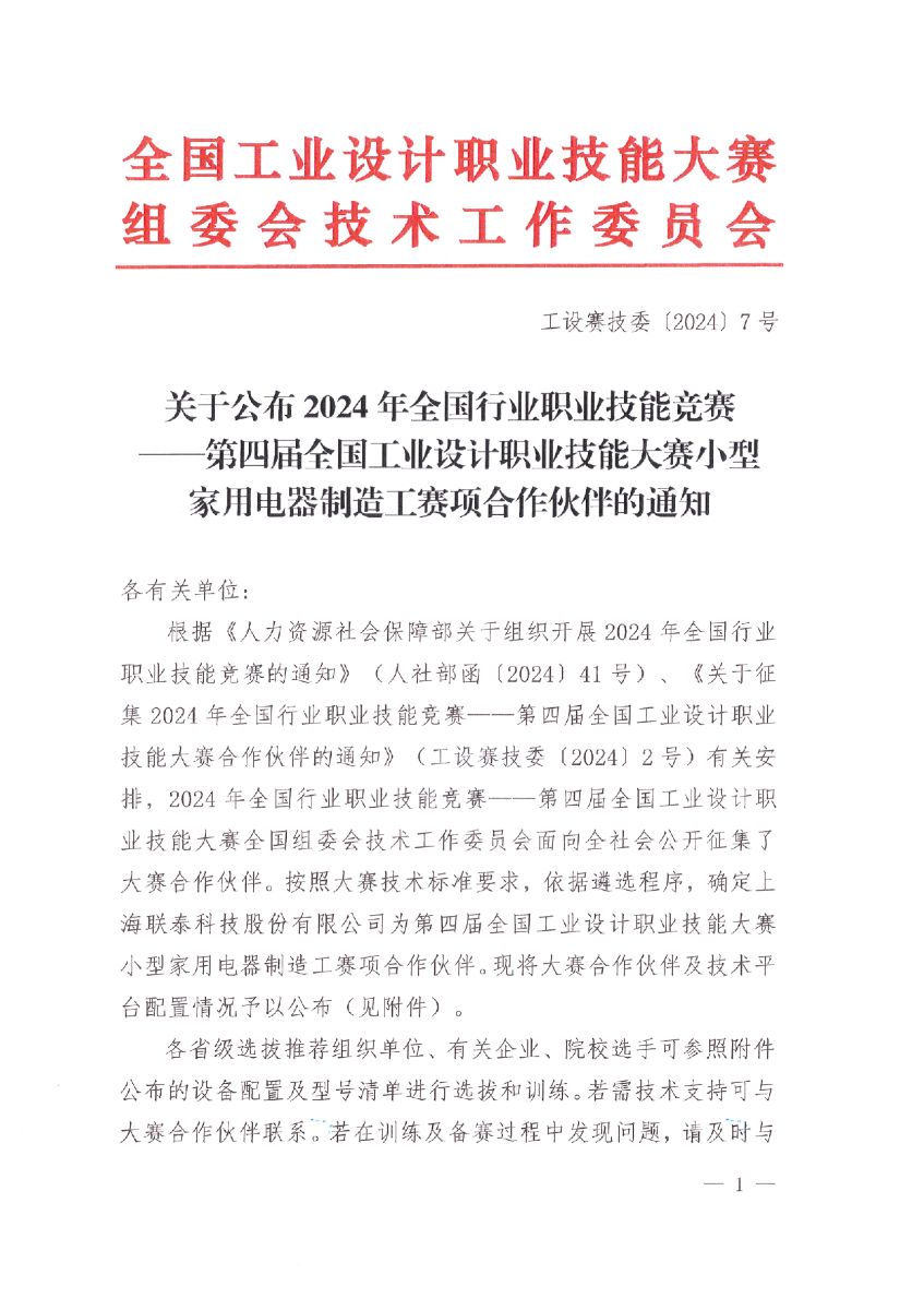 關(guān)于公布2024年第四屆全國(guó)工業(yè)設(shè)計(jì)職業(yè)技能大賽小型家用電器制造工賽項(xiàng)合作伙伴的通知
