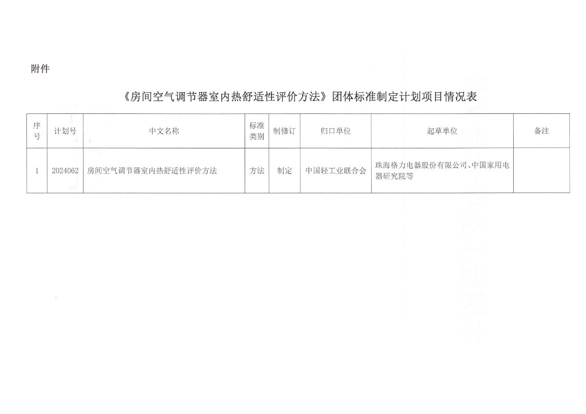 關(guān)于下達(dá)《房間空氣調(diào)節(jié)器室內(nèi)熱舒適性評價方法》中國輕工業(yè)聯(lián)合會團(tuán)體標(biāo)準(zhǔn)計劃的通知