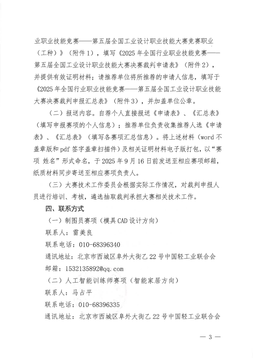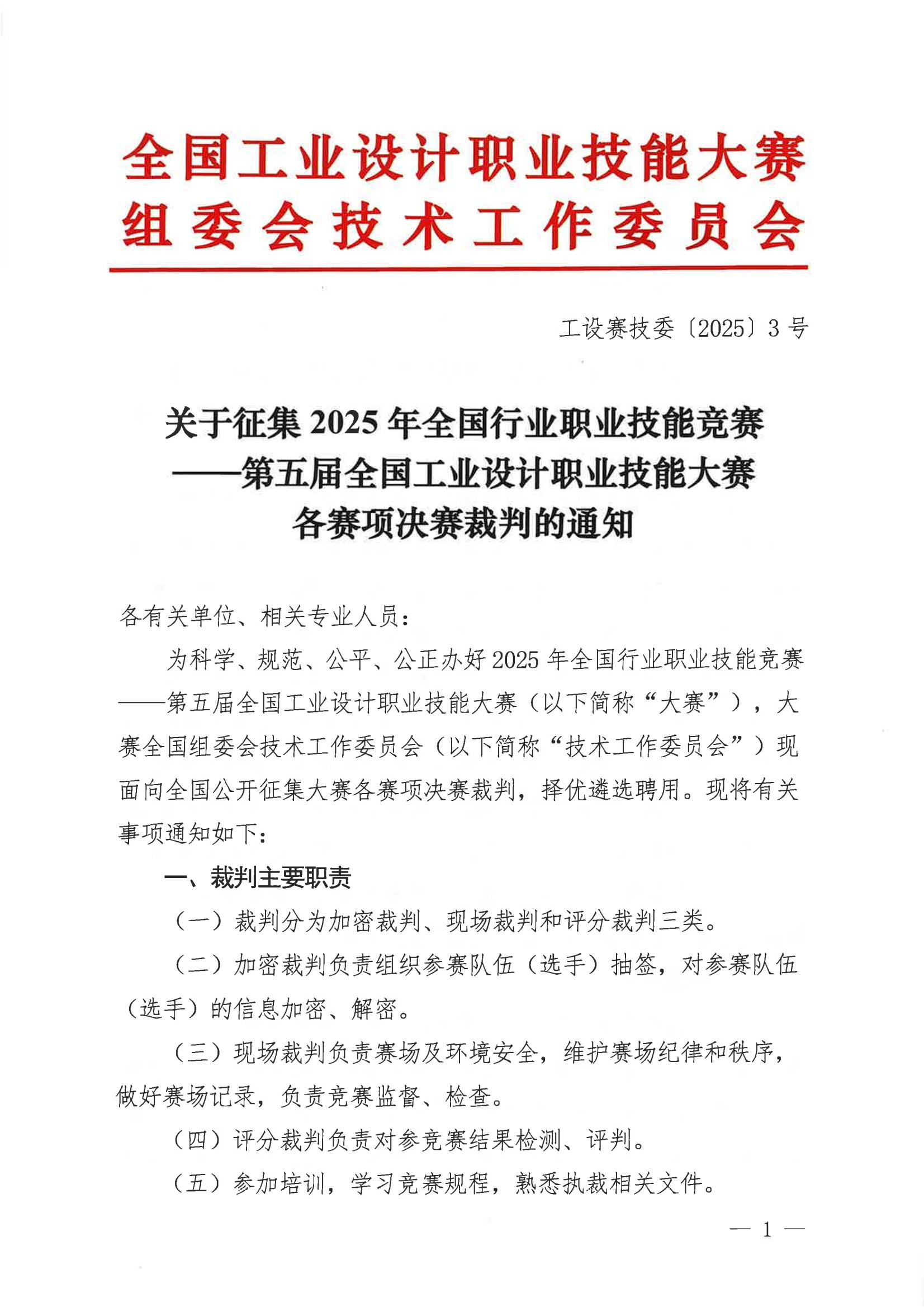 關于征集2025年全國行業(yè)職業(yè)技能競賽第五屆全國工業(yè)設計職業(yè)技能大賽各賽項決賽裁判的通知